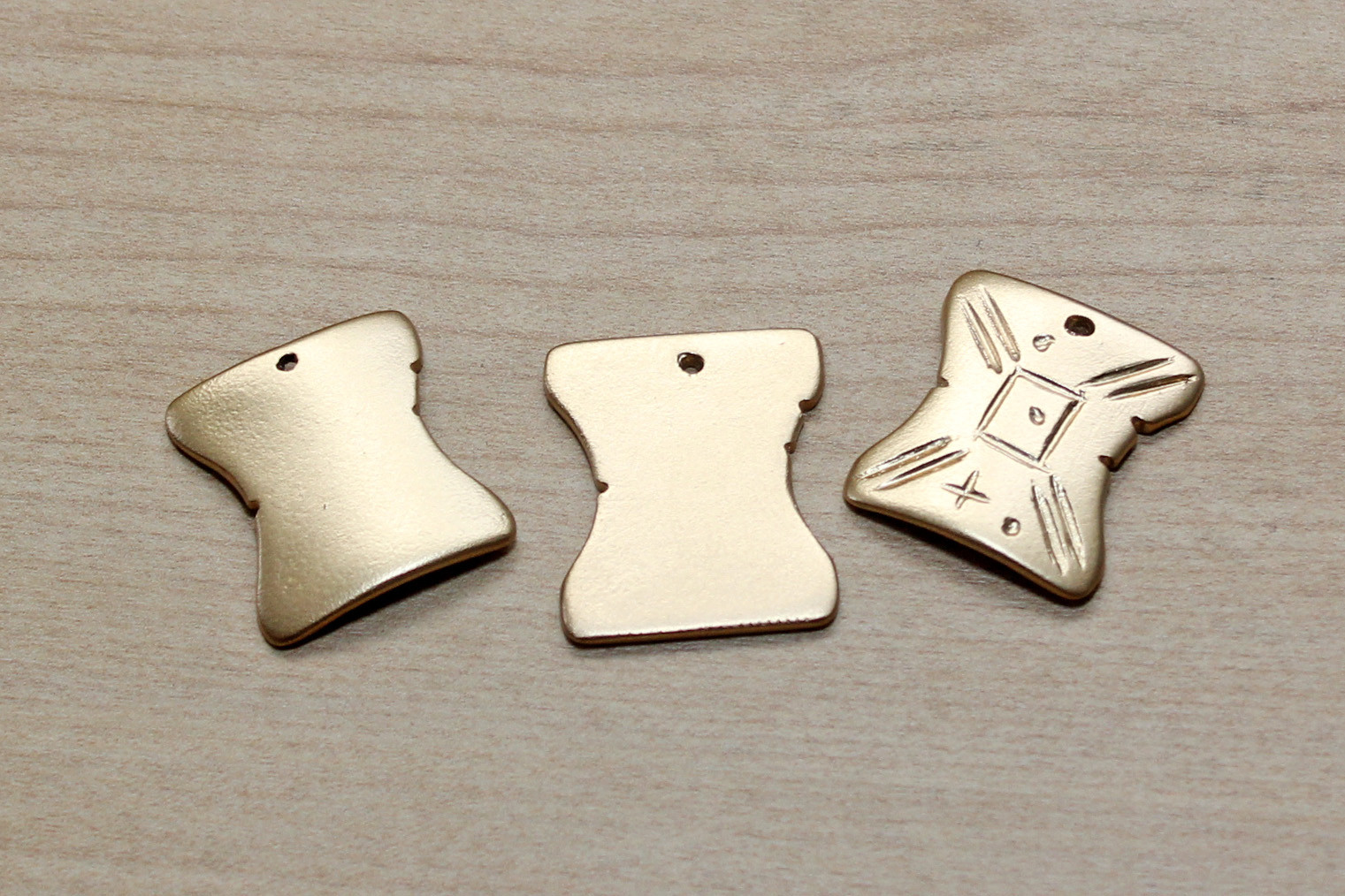 Below you can see my 3 finished versions (left to right) – flat/drawn, curved/drawn and curved/engraved. I hung them from different style chains, for a bit of variety. I am so happy to finally have a Japor snippet necklace I can wear anywhere!