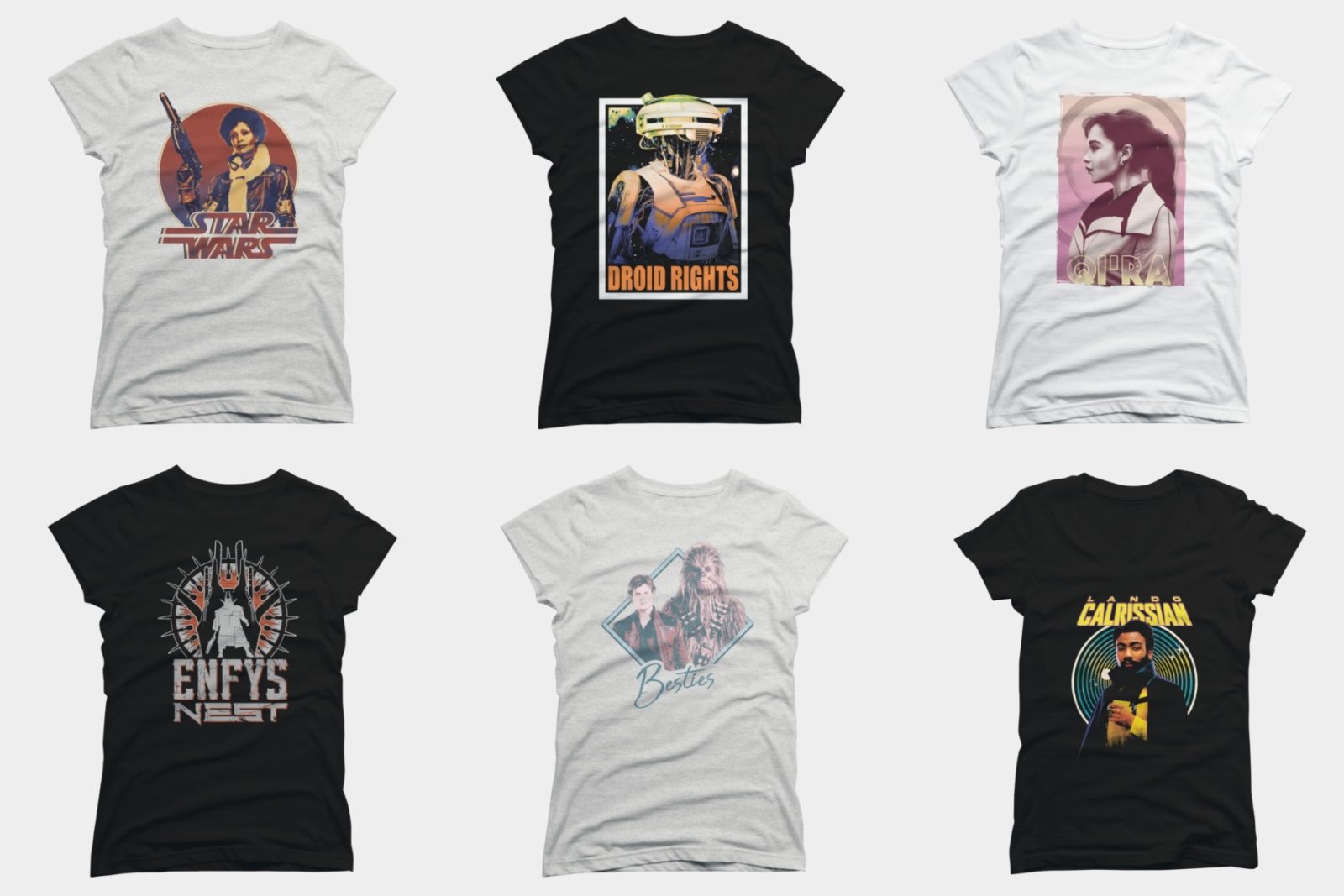 Apparel company Design By Humans has launched their Solo A Star Wars Story collection! The range includes 35 women’s tops, which feature a wide variety of print designs. Characters include Han Solo, Chewbacca, Lando Calrissian, Qi’ra, Val, L3-37, Enfys Nest, and of course, the Millennium Falcon.