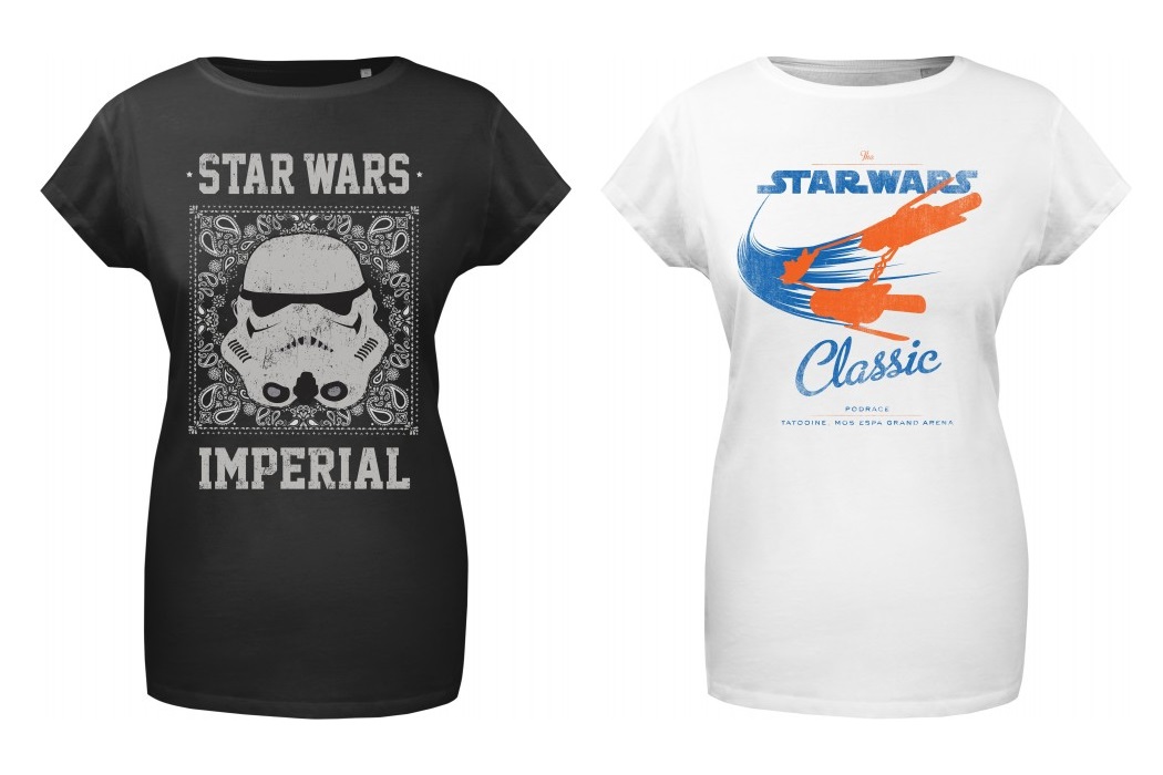 Check out the range of women’s GOZOO x Star Wars t-shirts available from Musterband. The range includes ten different designs to choose from, including Stormtroopers, Darth Vader, classic Star Wars logo, and even podracing! So you can pick up a fantastic Star Wars t-shirt while grabbing a Musterbrand jacket – complete your outfit in one order 🙂