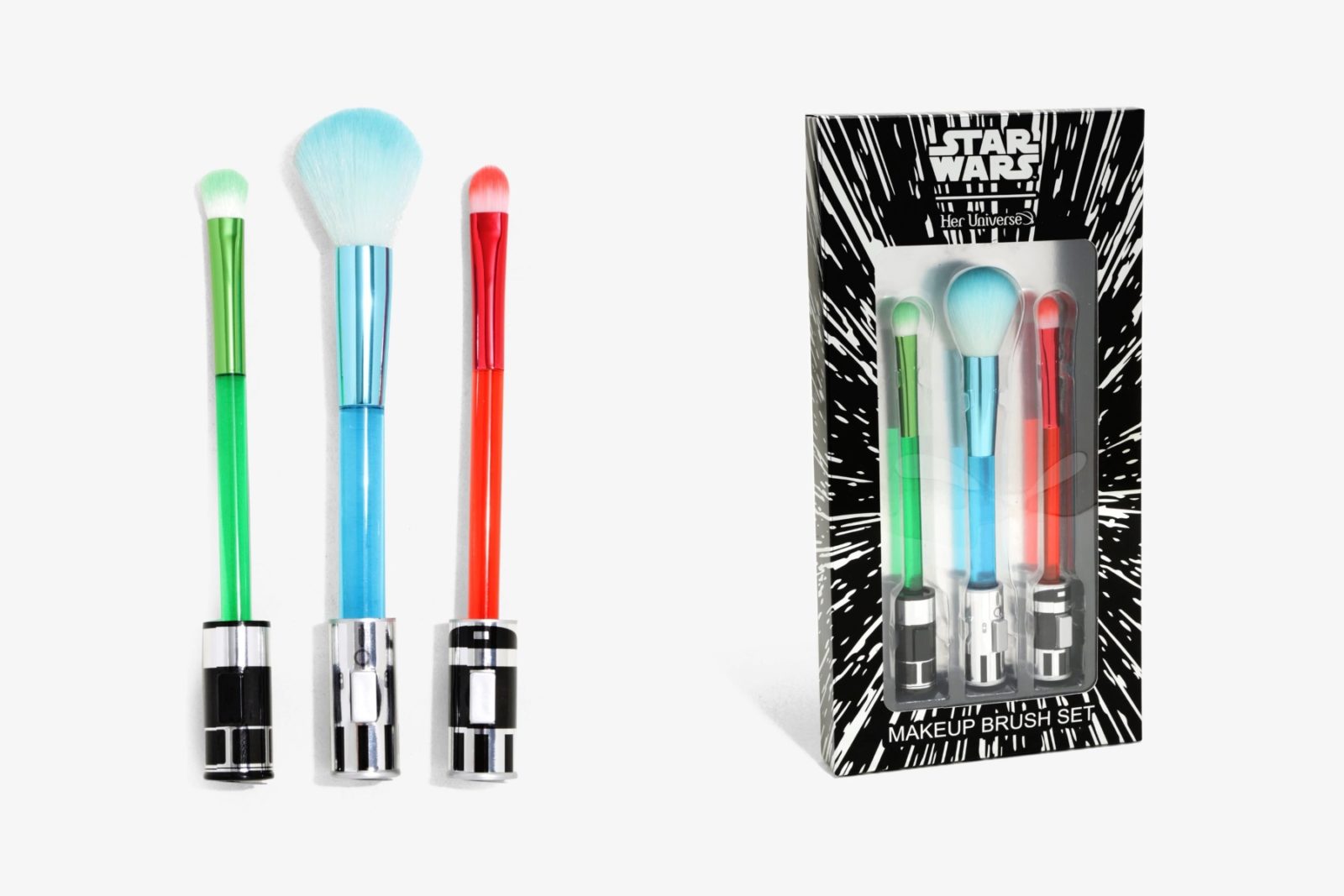Let The Force flow through you as you do your makeup. This set of makeup brushes from Star Wars and Her Universe feature lightsaber inspired handles.