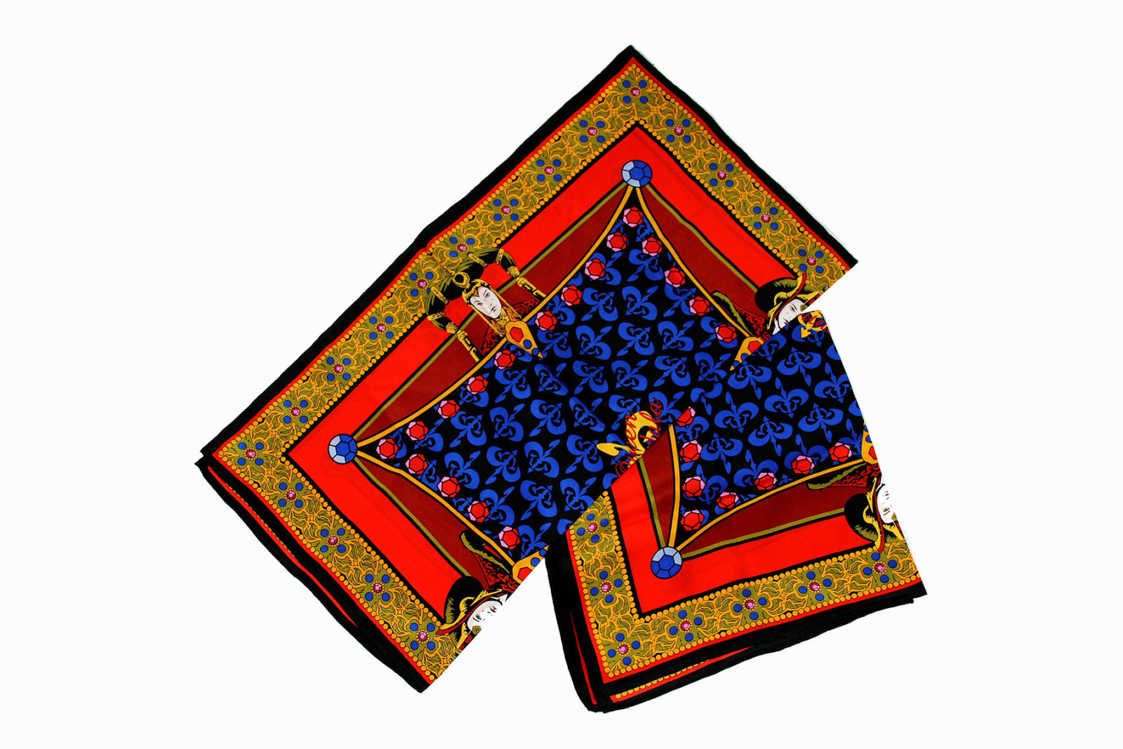 Since then I have been able to find a little bit more information about them via The Collectors Archive – they were made by Ralph Marlin in 1999 for the release of Episode 1, together with a wide range of Star Wars men’s ties. They measure approx 50cm along each edge, made of a lovely soft thin silk. Unfortunately I don’t know their original retail price, or how many were made, but they are so very pretty. Below are photos of my scarves – they feature the Naboo symbol and two different portraits of Queen Amidala (her ‘senate’ gown and ‘throne room’ gowns).