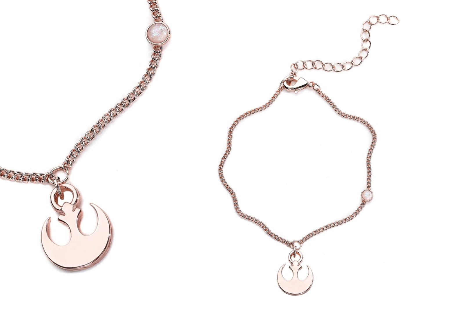 This Star Wars Rebel Alliance Symbol bracelet is available at EMP Online. The warm-toned chain bracelet features a cut-out Rebel Alliance ‘starbird’ symbol charm, and a small rhinestone gem accent on the chain. The bracelet is adjustable, with a lobster claw-style clasp and length of wider adjustment chain (length approximately 15.5cm to 22cm).