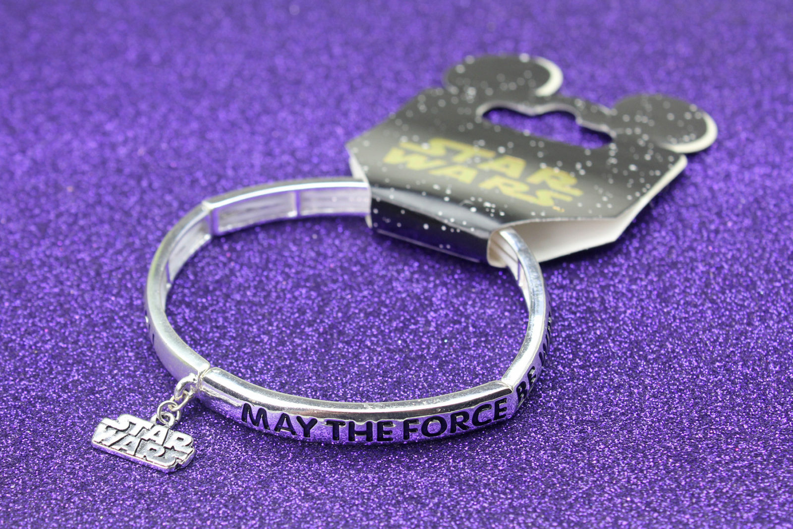 Today’s review features the Disney x Star Wars ‘May The Force Be With You’ bracelet. During my visit in January, the bracelet was priced at US$16.99 each (plus tax), in Disney’s ‘tan’ jewelry price category. Neither the bracelet or the tag carry any mention of the material the bracelet is made from, so I’m not sure. While this bracelet isn’t available from the online Disney Store, it does show up on eBay from time to time – for example, there is currently one available from this seller.