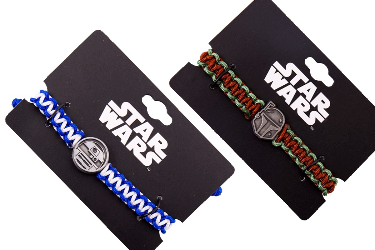 These Star Wars cord bracelets are available at Zing Pop Culture stores. The range includes six designs, including R2-D2, Boba Fett, Stormtrooper, BB-8, Millennium Falcon, and Darth Vader. Each bracelet is woven from two different colour cords, with a small character medallion.