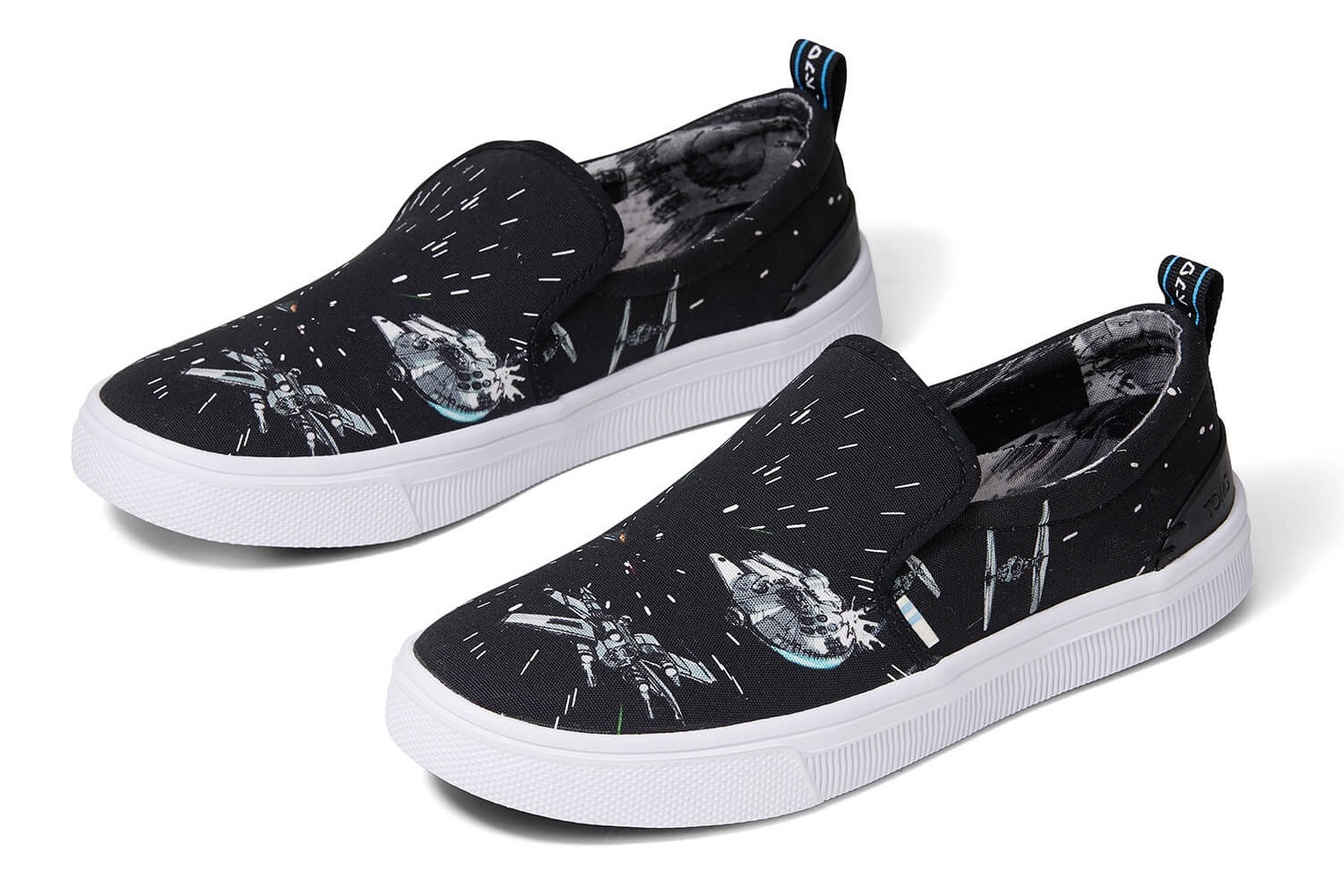 The Toms x Star Wars Summer 2019 footwear collection is now available! Featuring custom artwork with designs inspired by the original trilogy, the range includes flat footwear styles for women, men, and children.