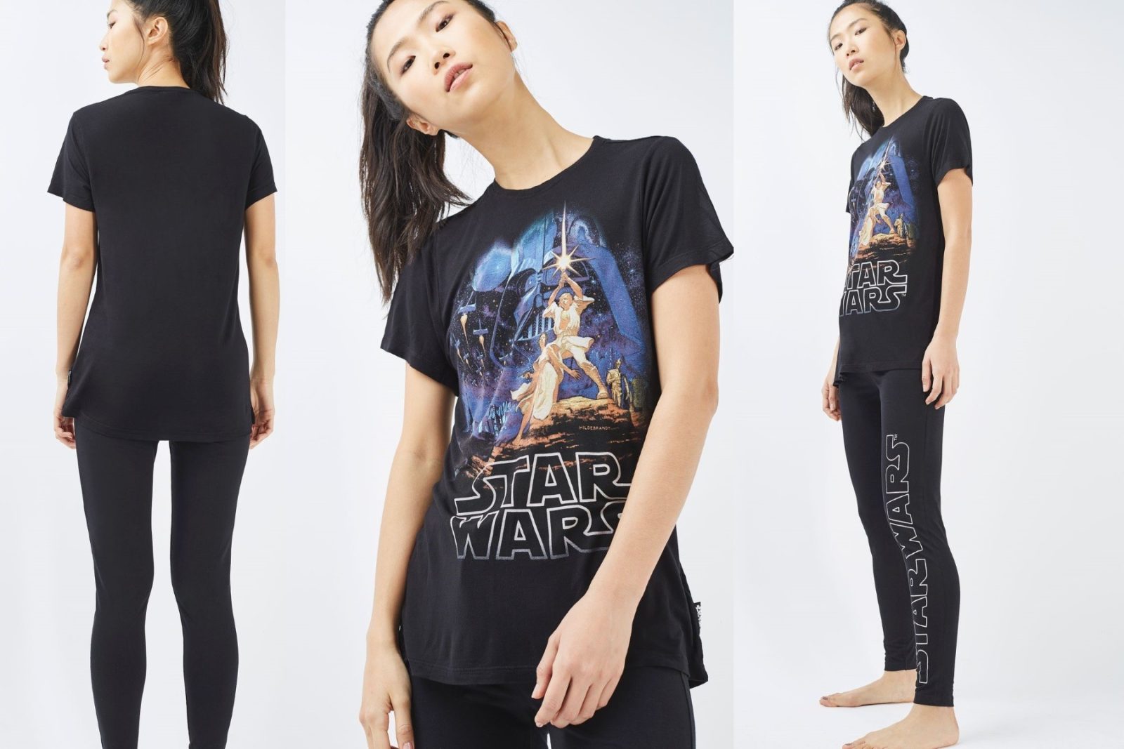 This women’s Star Wars nightwear set is now available at Topshop. The set includes a sleep tee and leggings – the t-shirt features the classic poster artwork by the Hildebrandt brothers, while the leggings feature the Star Wars logo.