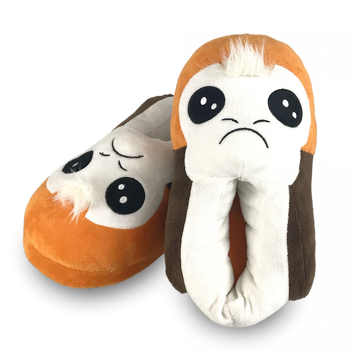 These cute women’s Star Wars porg slippers are available at TruffleShuffle. Made from 100% polyester with non-slip soles, the plush slippers are inspired by the cute little porgs from The Last Jedi. The top surface is accented with embroidered face details, and even a little white tuft of faux faur.