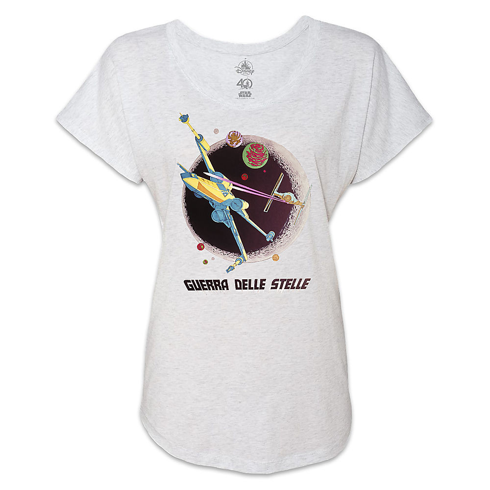 The global impact of Star Wars is reflected in this tee for women. Featuring the Italian translation of the franchise’s title, it was created to celebrate the 40th anniversary of the original movie Episode IV: A New Hope.