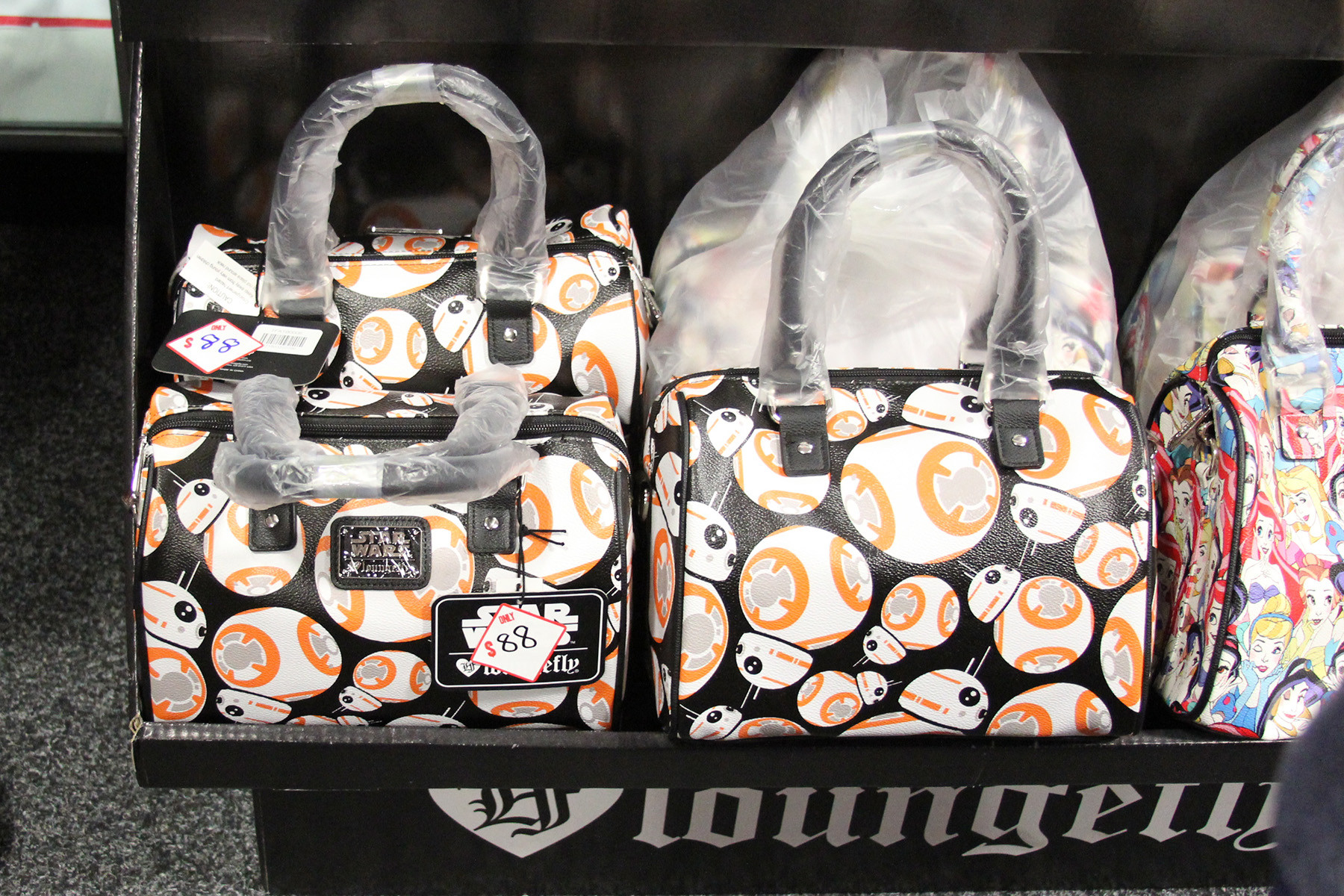 Of course a great highlight for me is the range of women’s Star Wars fashion available locally. Popular brands like Loungefly and Body Vibe are now available from a number of companies, including Mighty Ape and EB Games. EB Games had a full Loungefly display, which included Star Wars handbags and wallets. My favourite from the range available was the Star Wars applique’ logo tote – it is just fantastic in person, definitely on my shopping list!