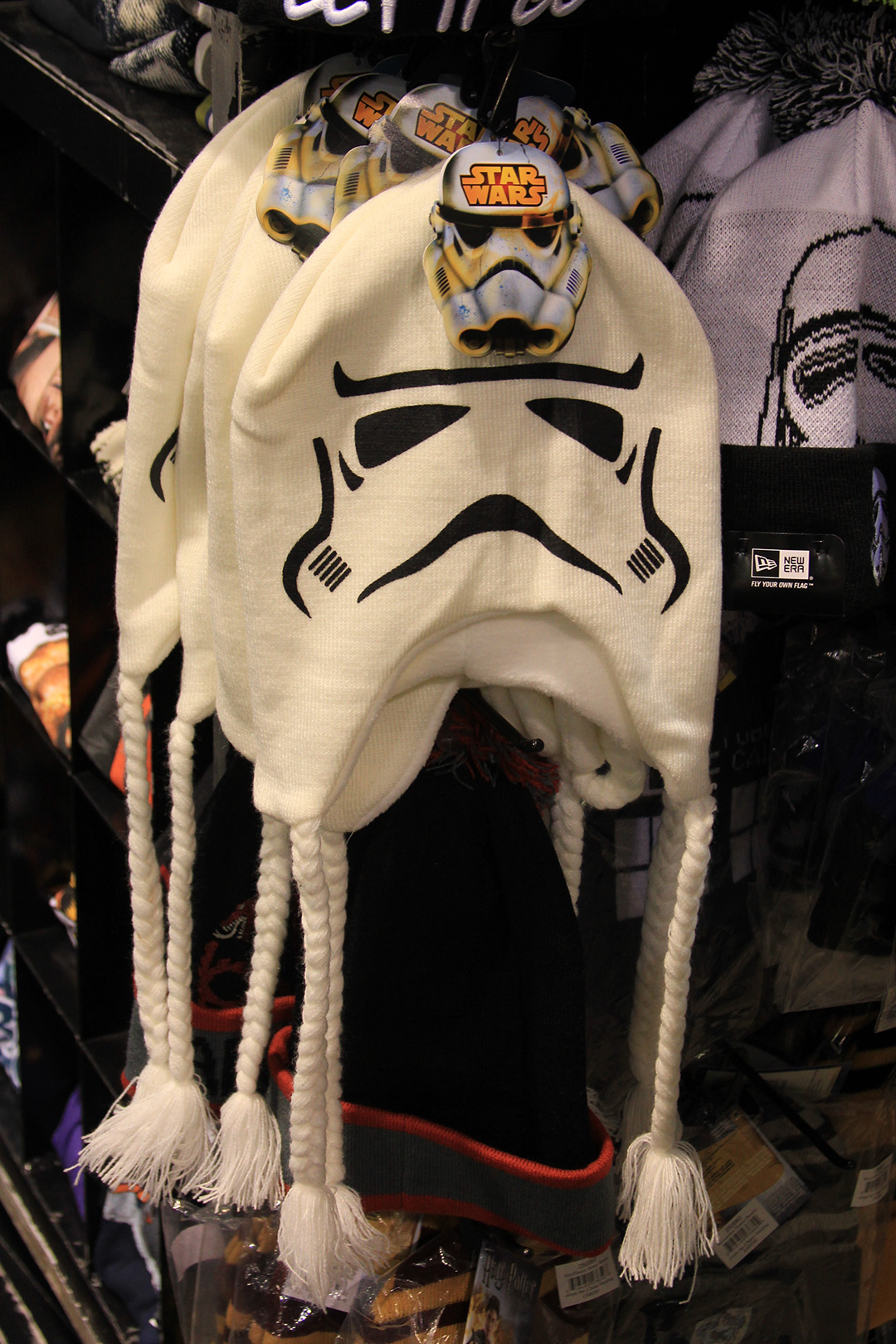 The red lightsaber necklace was one of four jade lightsaber pendant designs made by Noble Wealth in 2005 (credit to SWCA for the info) – I really wanted this one but couldn’t quite afford it after all my earlier shopping! The stormtrooper knitted hat is a modern item, I love the braids as a fun touch. The women’s R2-D2 backpack was something I hadn’t seen before – but spotted many worn around the convention, a popular and useful item.