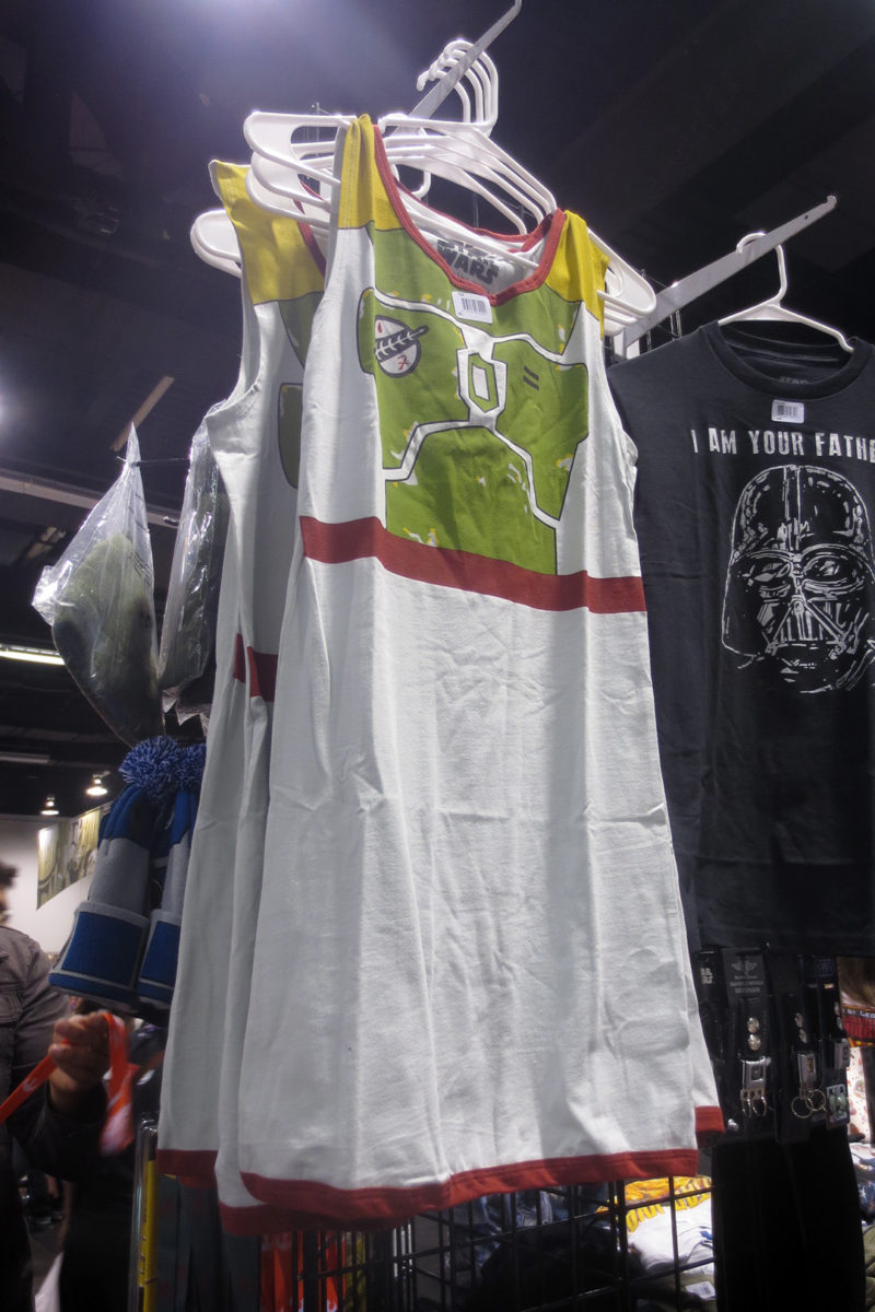 The imperial leggings are made by Her Universe, as is the Boba Fett tunic dress – Her Universe only stocked their new collection items at their booth, so it was great to see other stockists selling older items for fans who are still looking. The pink and brown women’s t-shirts were vintage items, very cool.
