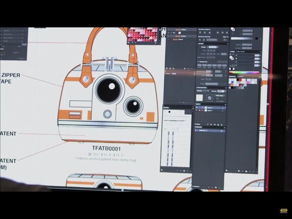 During the Star Wars Livestream Unboxing event on youtube, a segment was played that gave a behind the scenes look at Loungefly and their Star Wars products. The footage was a great look at the design and creation process, but also including some sneak peaks at upcoming products including a BB-8 dome bag! This is just so exciting – BB-8 already has tremendous appeal, and I was really hoping to see some fashion items featuring the new droid.