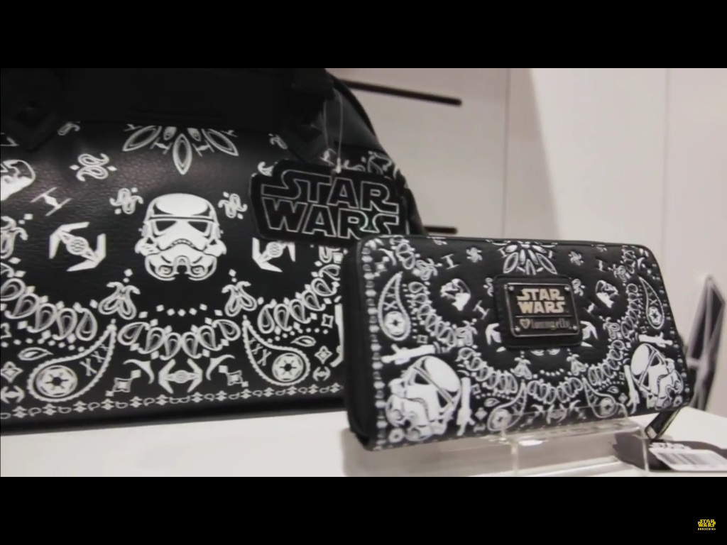 Also spotted in the video – matching BB-8 wallet and coin purse, First Order Stormtrooper wallet, Captain Phasma dome bag, and matching bag and wallet set featuring the white print previously sneaked peaked. Check out the photos below – I apologize for the resolution of some of the screenshots, I was watching the livestream on my ipad at the time this segment aired.