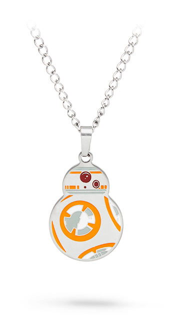 Thinkgeek has a new BB-8 necklace available. Made by Body Vibe, the stainless steel necklace features a flat pendant of BB-8 hung on a 22″ chain. The BB-8 necklace is priced at US$19.99 each – Thinkgeek can ship internationally.