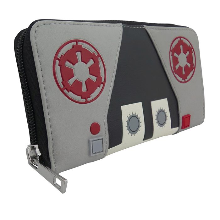 Our Star Wars AT-AT Pilot Women’s Zip Around Wallet celebrates the imposing, protective uniform of the dreaded, highly-skilled AT-AT pilot! It looks just like the AT-AT Pilot uniform with raised, leather-like uniform accents layered with Imperial symbols and simulated, hand-stitched padding. One side features indented diodes flanking a metallic, rectangular badge with raised Star Wars logo. ‘Side 2’ features smaller diodes and stitched control boxes.