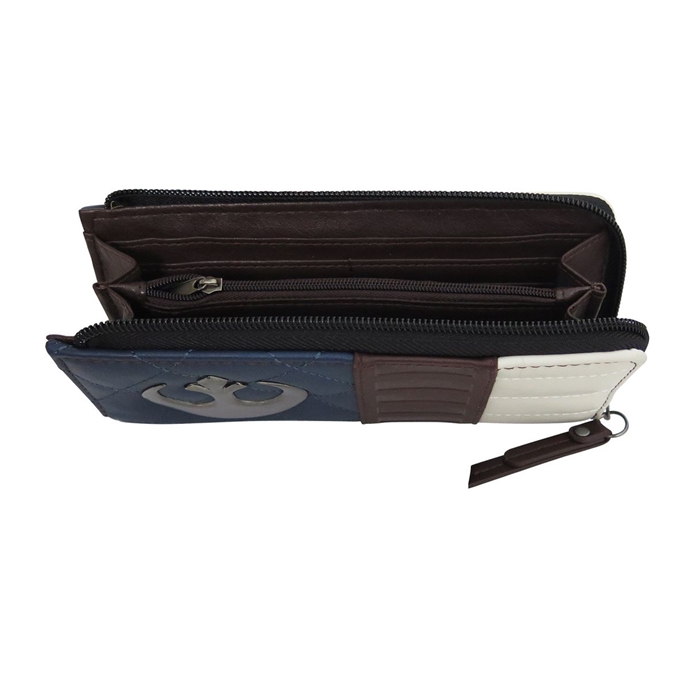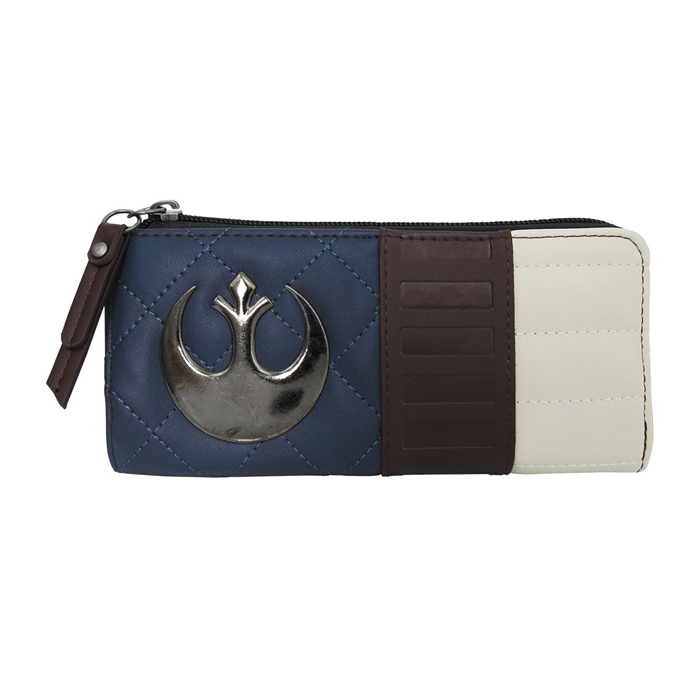 The women’s Bioworld x Star Wars Hoth Han Solo wallet is now available at SuperHeroStuff. Inspired by Han Solo’s outfit on Hoth in The Empire Strikes Back, the women’s zip around style wallet is made from faux leather and features a silver-tone Rebel Alliance symbol on one side, and a Han Solo patch on the other side.