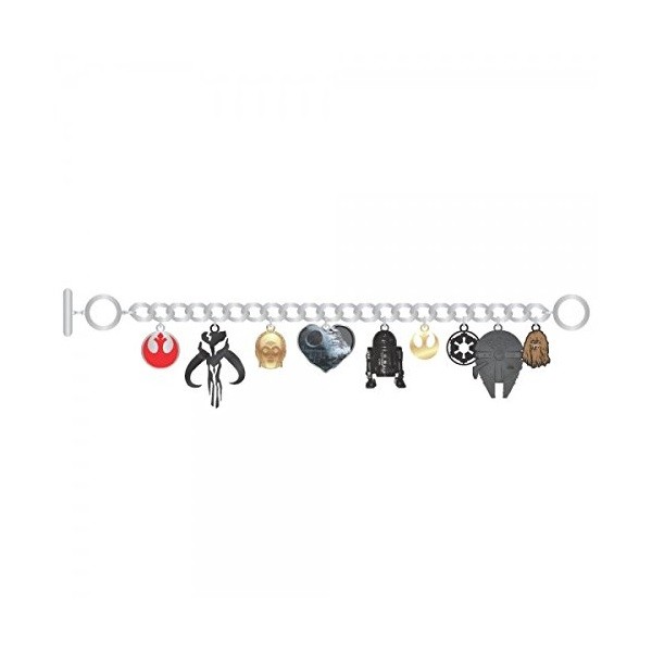 This great Bioworld x Star Wars charm bracelet is available on Amazon.com. The silver plated brass chain bracelet has a ‘bar and ring’ style closure, and features nine Star Wars charms, of varying sizes and shapes. The charm designs include the Rebel Alliance symbol, Mandalorian symbol, C-3PO, heart shaped Death Star, R2-D2, cut out Rebel Alliance symbol, Imperial symbol, Millennium Falcon, and Chewbacca. Available from a variety of sellers on Amazon, the bracelet is priced at US$18.80 each – shipping policies/prices vary by seller.