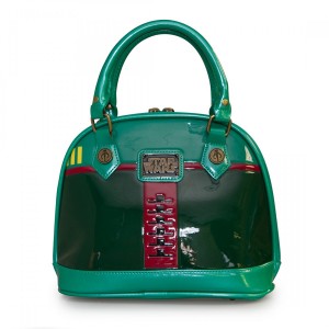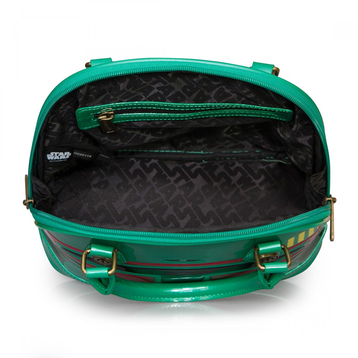 Loungefly has finally added the Boba Fett mini dome bag to their website – and we now have full front and back photos too. The bag retails for US$65, which is US$5 more than the R2-D2 or Darth Vader mini dome bags. It is the same size as the other mini dome bags, so perhaps it is the different metal fittings (the other bags use silver studs/zips etc) that account for the slight cost increase? In any case, it is a great use of Boba Fett’s classic helmet design, featuring details from the front and back. Unfortunately Loungefly.com doesn’t ship internationally so if you live outside the US, see my earlier post.