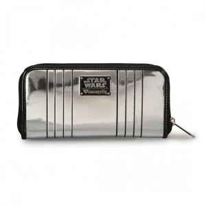 The Loungefly Captain Phasma items are now available! The range includes a Captain Phasma embossed mini dome bag, wallet and coin purse. Each item is made from silver patent leather and features printed and embossed details based on Captain Phasma’s helmet. Unfortunately Loungefly does not ship internationally – but US customers can get free ground shipping on orders over US$75.00 (excludes Alaska and Hawaii). The handbag was first previewed in the Force Friday video from Loungefly (screencaps here) – it looks very shiny in the video, I’d love to see it in person!