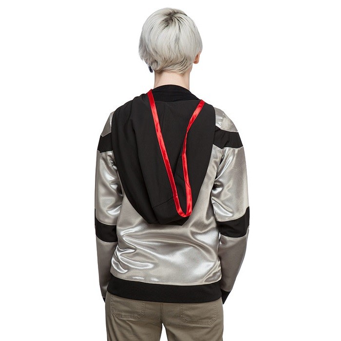 You can see more of her every day when you get this Captain Phasma Track Jacket. Made from shiny silver satin-weave with black fabric accents interspersed, this asymmetrical zip jacket’s most outstanding feature is a cape that drapes across the left shoulder (and can be pulled up as a hood in a pinch). Because you never know what the weather’s going to be like where your division is deployed.