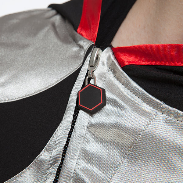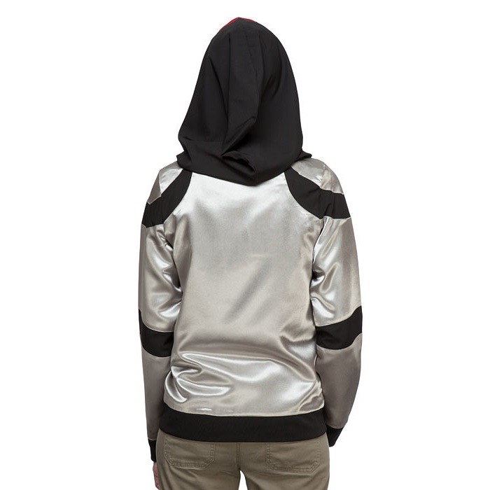 Thinkgeek has a new exclusive women’s Captain Phasma jacket available! Created by and exclusive to Thinkgeek, the Captain Phasma jacket features an ‘everyday cosplay’ design of Phasma’s distinctive armour. Made from silver satin-weave fabric, the jacket features black accents and red trim around the cape/hood. One of my favourite touches is the First Order symbol zipper pull, on the asymmetrical right-side zipper.