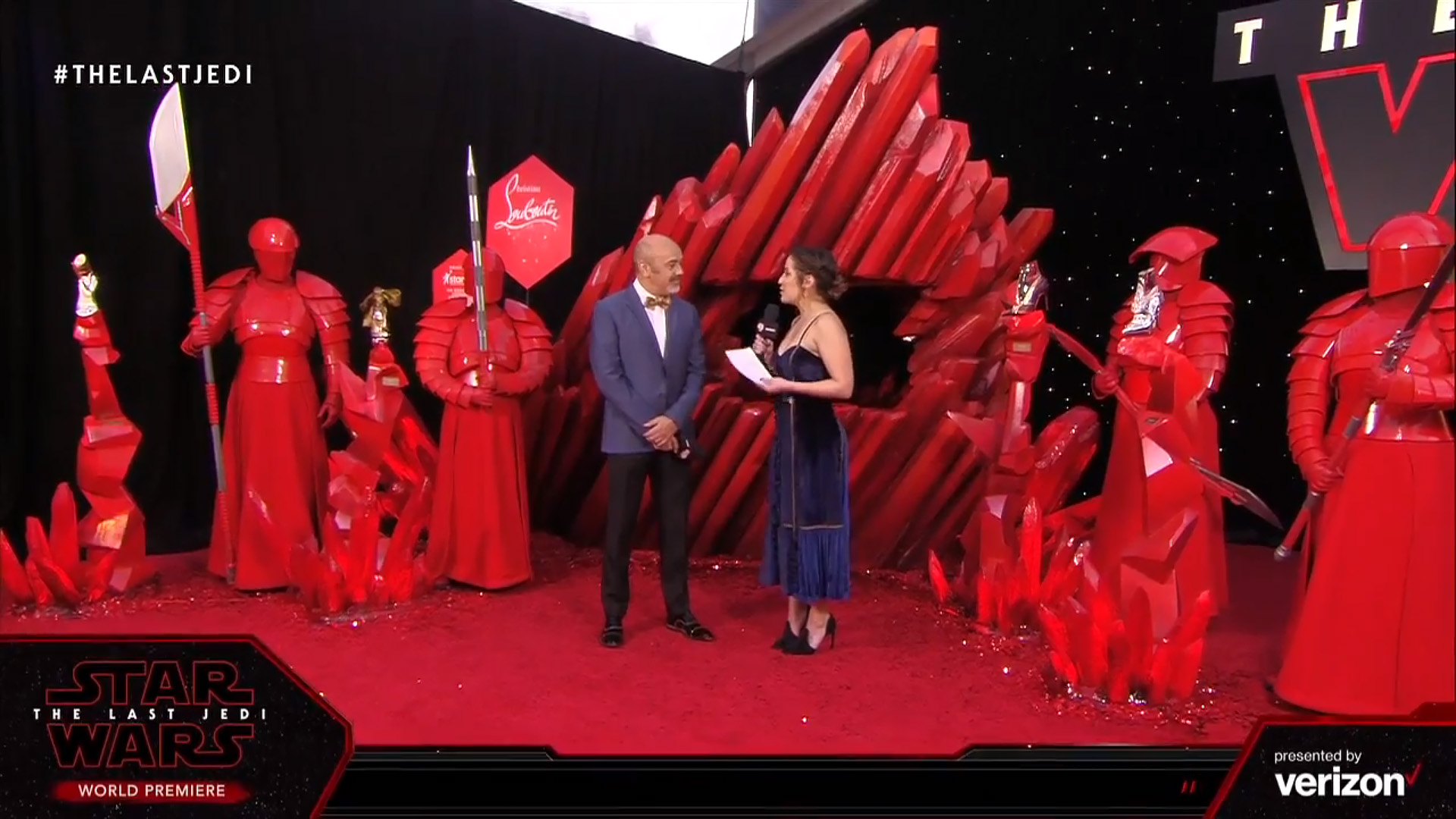 Andi – I’m here on the red carpet with a world renowned shoe designer who has teamed up with Lucasfilm to create something truly special for Star Wars The Last Jedi. Please welcome Christian Louboutin. Thank you so much for joining me.