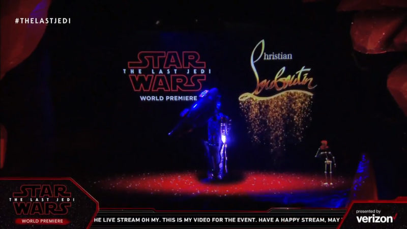 One of the highlights of red carpet premiere of The Last Jedi was the interview with shoe designer Christian Louboutin. The Star Wars Show host Andi Guetierrez talked to Christian Louboutin about Star Wars shoe designs he created, his collaboration with Lucasfilm, and his signature red colour.