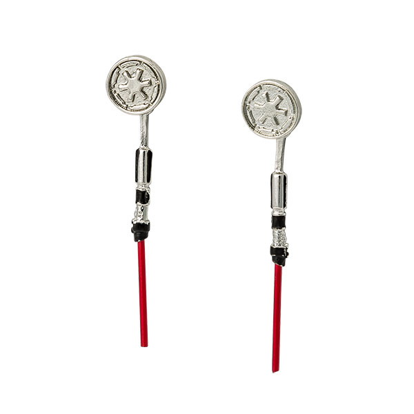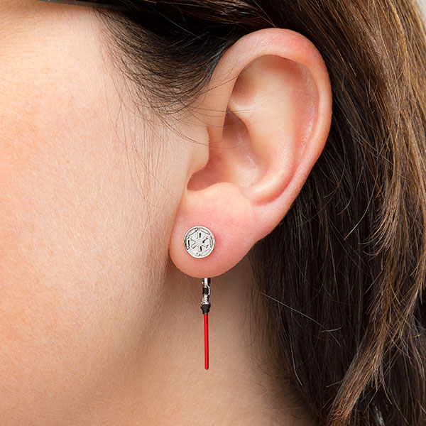 Please be careful with these Star Wars Star Wars Darth Vader Dangling Lightsaber Earrings. These are stud earrings featuring the Imperial Crest, only they also come with a lightsaber charm that you put the post through to create a dangle effect. The result? Two different looks from a single pair of earrings.
