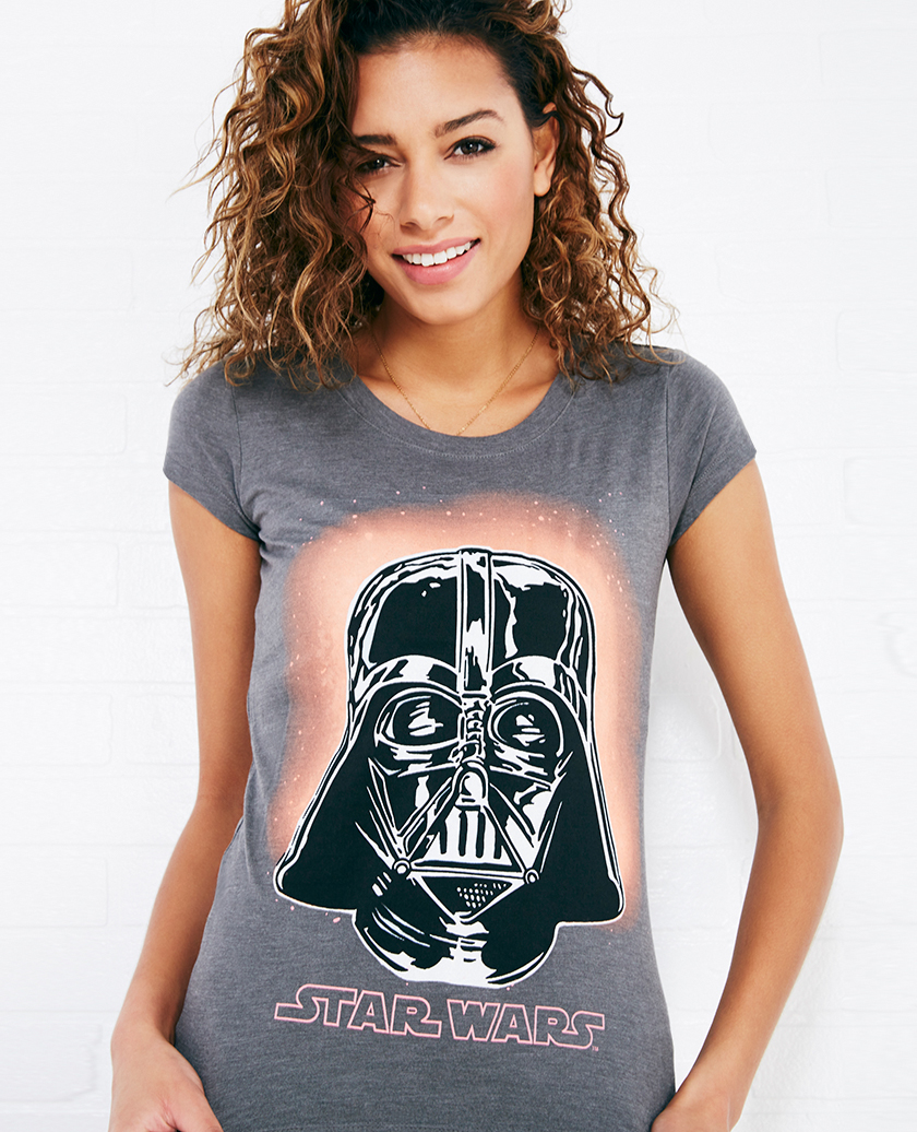 Wet Seal has a new women’s Darth Vader t-shirt available. The grey t-shirt features a front print of Darth Vader – it is available in sizes S to XL, and is currently priced at US$14.90 each. Unfortunately Wet Seal does not ship outside the US, so international customers can only purchase via a mail redirection service.