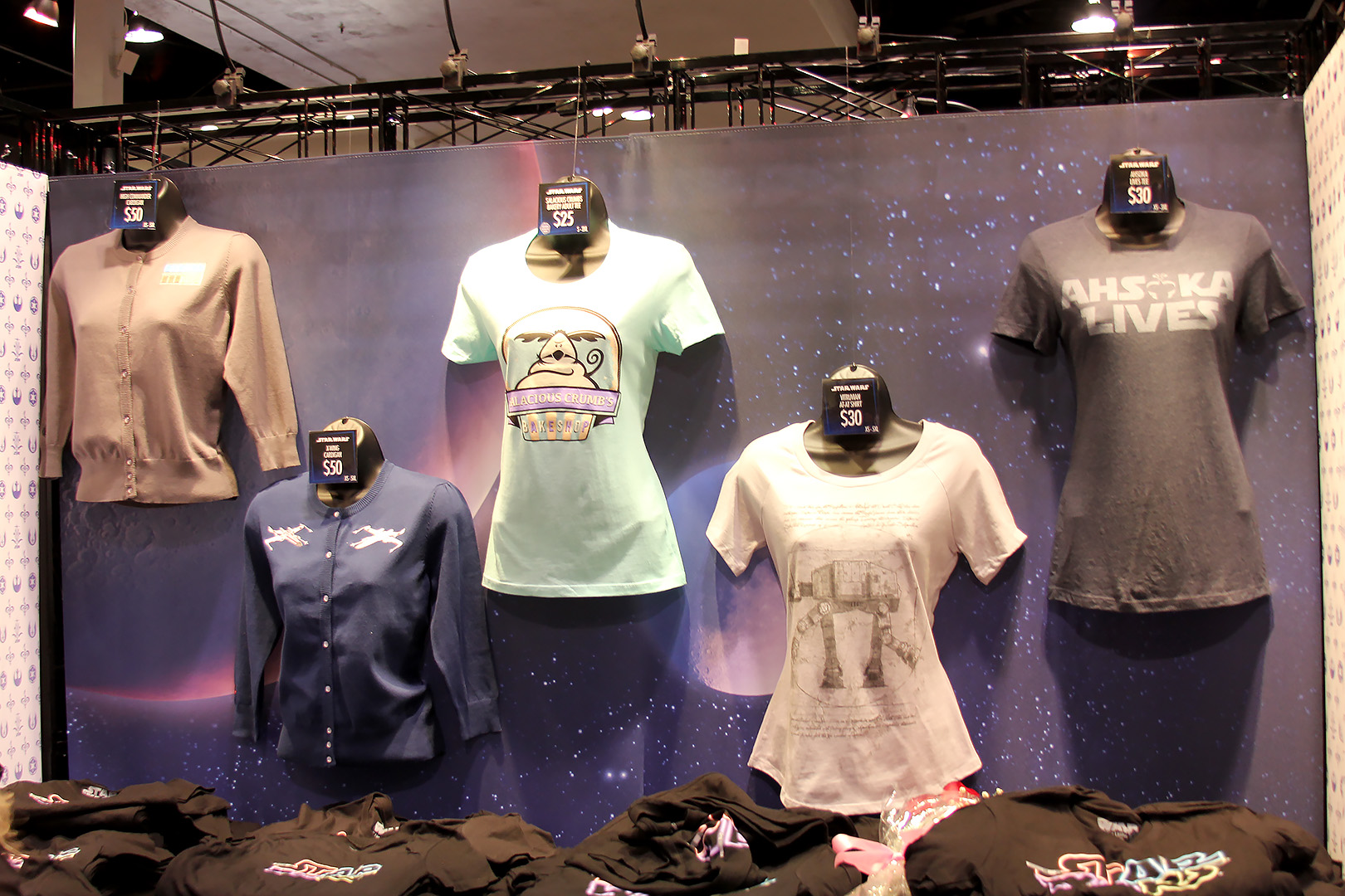 It’s been a great first day at Celebration Anaheim! I haven’t taken as many photos as I wanted to yet, as I was trying to purchase all the new and exclusive apparel items on my shopping list. The convention floor is very busy, I didn’t even get a thorough look at the booths I did get to, there was just enough time to grab that item on my wish list before heading to the next store on my list. I’ll definitely have a proper look and take lots of photos tomorrow – now that I have the new releases and exclusives on my wish list, I’m keen to see what else there is available!