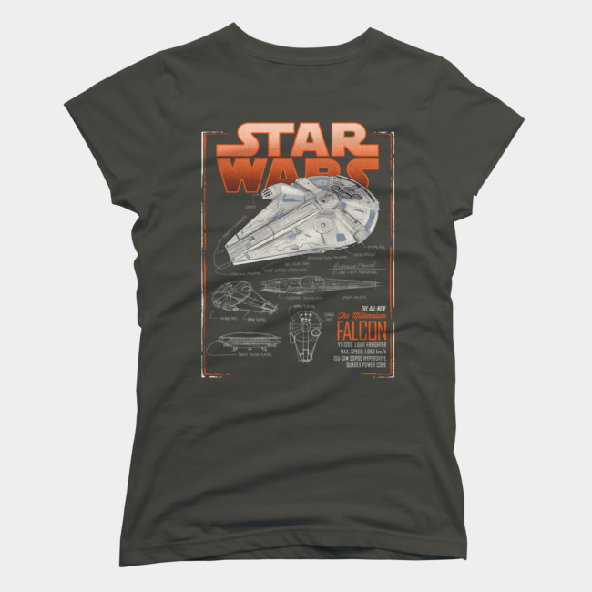 - Women’s Presenting: The Millennium Falcon T-Shirt – US$26.00 each – sizes S to 3XL