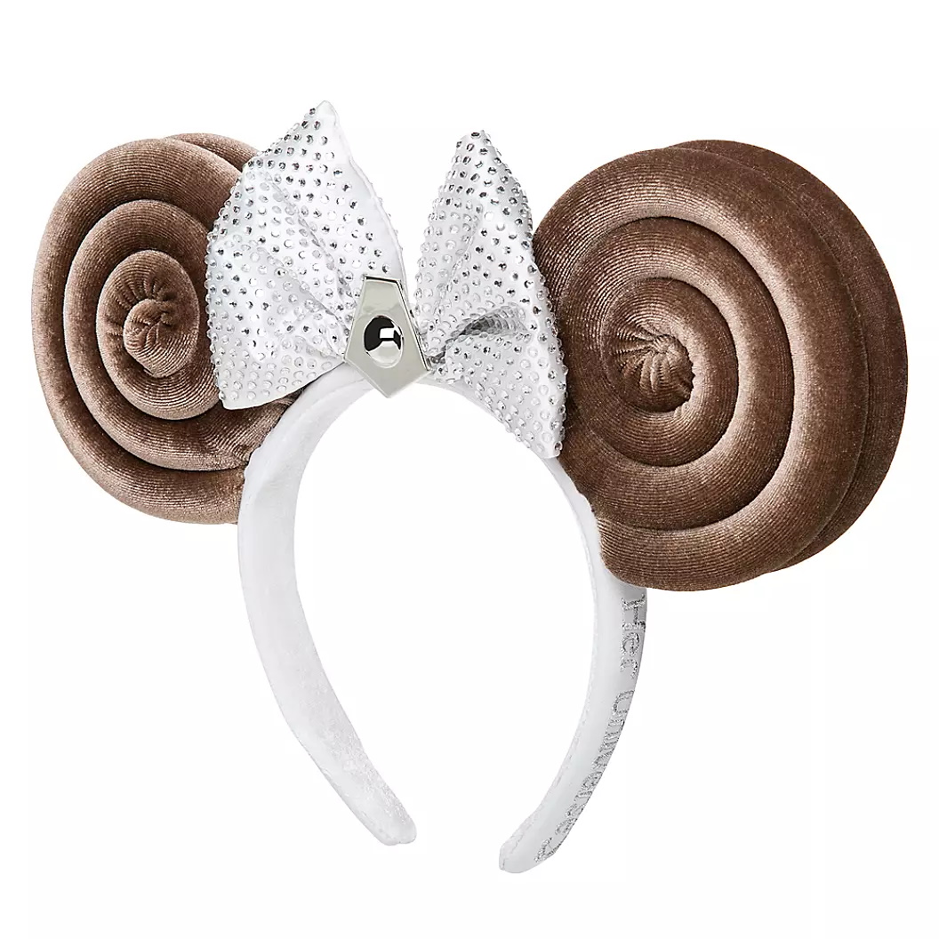 Inspired by Princess Leia’s unique hair buns, this whimsical take on the Minnie Mouse ear headband is designed by Star Wars actress Ashley Eckstein for Her Universe. These plush ears feature a gem-studded bow and metal embellishment at the center.