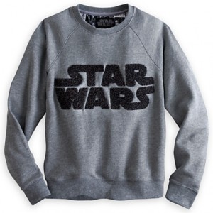 The Disney Store has a new women’s Star Wars sweatshirt. The heather grey raglan sleeve sweatshirt features the Star Wars logo in black on the front – the lettering is described as ‘fuzzy, with metallic flecks’. Available in sizes XXS to XXL (though the XXL is currently out of stock), the sweatshirt is priced at US$44.95 – the Disney Store can ship internationally.