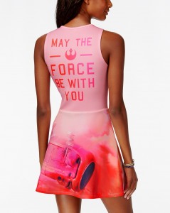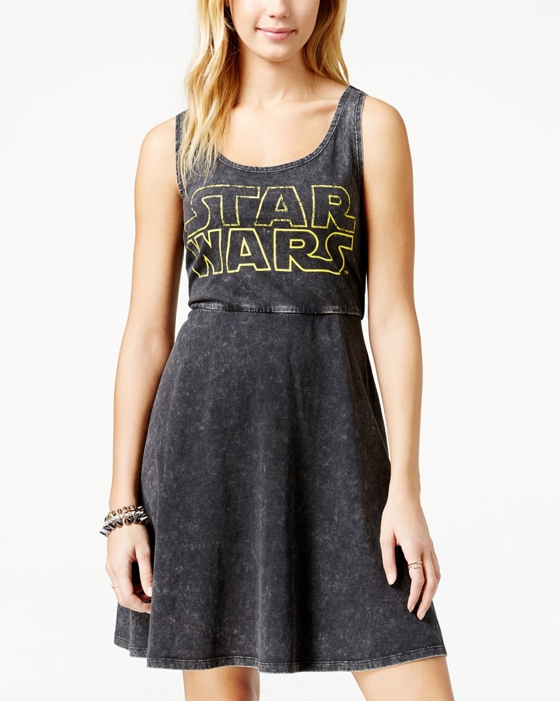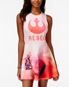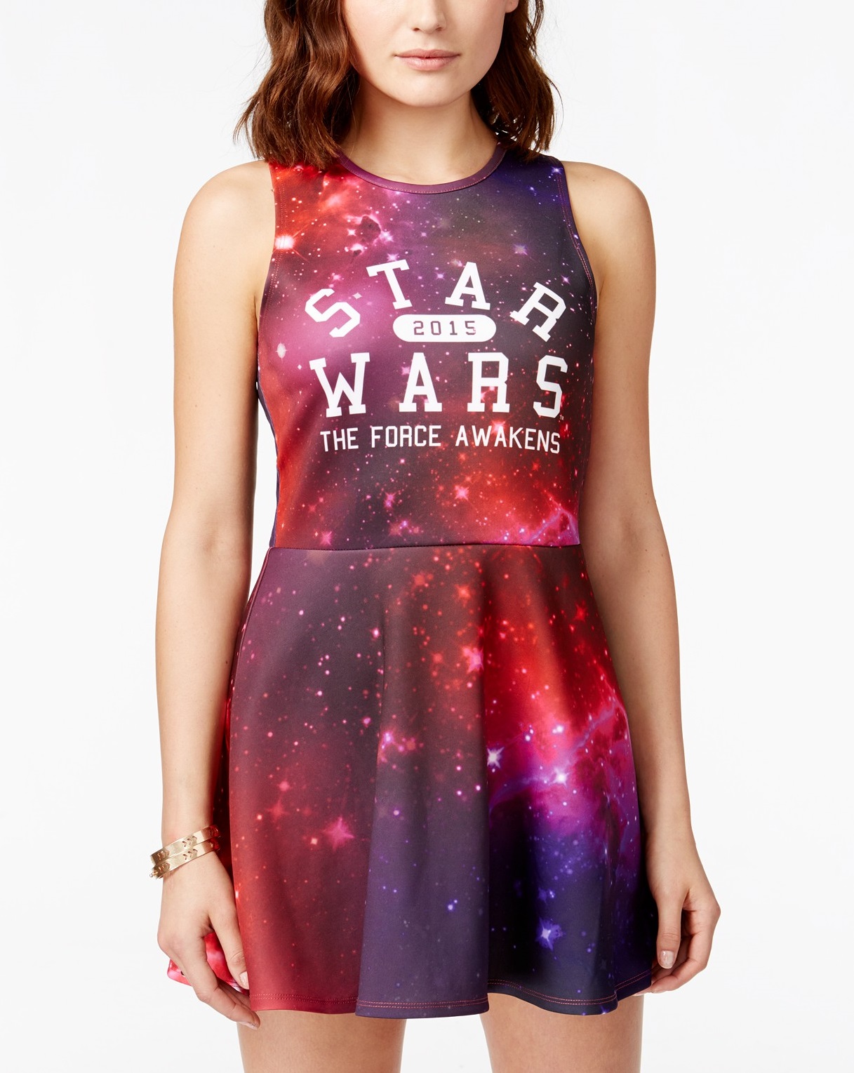 Macy’s has a great new range of women’s Star Wars dresses! There are four new ‘fit and flare’ printed dresses made by Mighty Fine, all with The Force Awakens designs including Rey. The other three dresses are made by Hybrid, and include a Star Wars logo tank dress, a Stormtrooper sheath dress, and a comic art high-low dress. These are just fantastic designs – the Mighty Fine dresses look like something Black Milk Clothing might have made if they had kept the Star Wars license. I love the designs and colours – I want them all – the Rey dress in particular! All are available in sizes XS to XL – Macy’s can ship internationally.