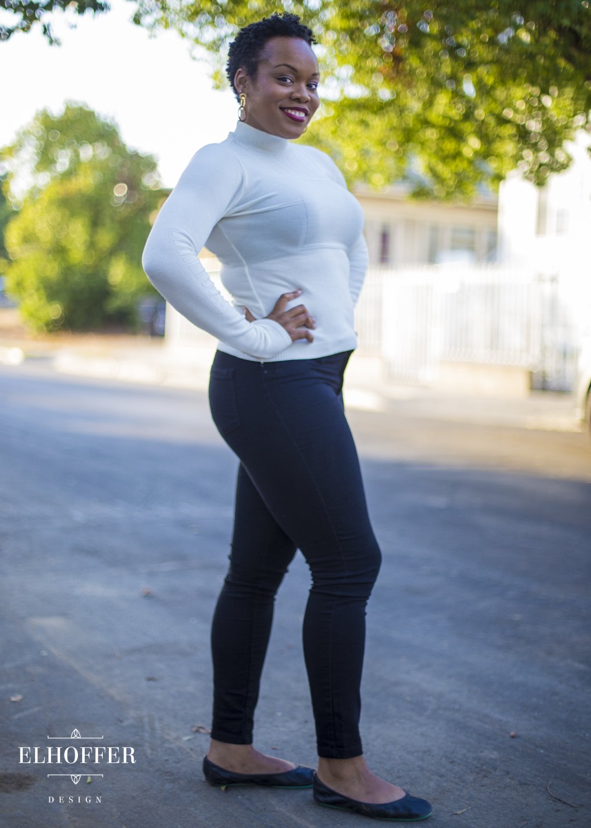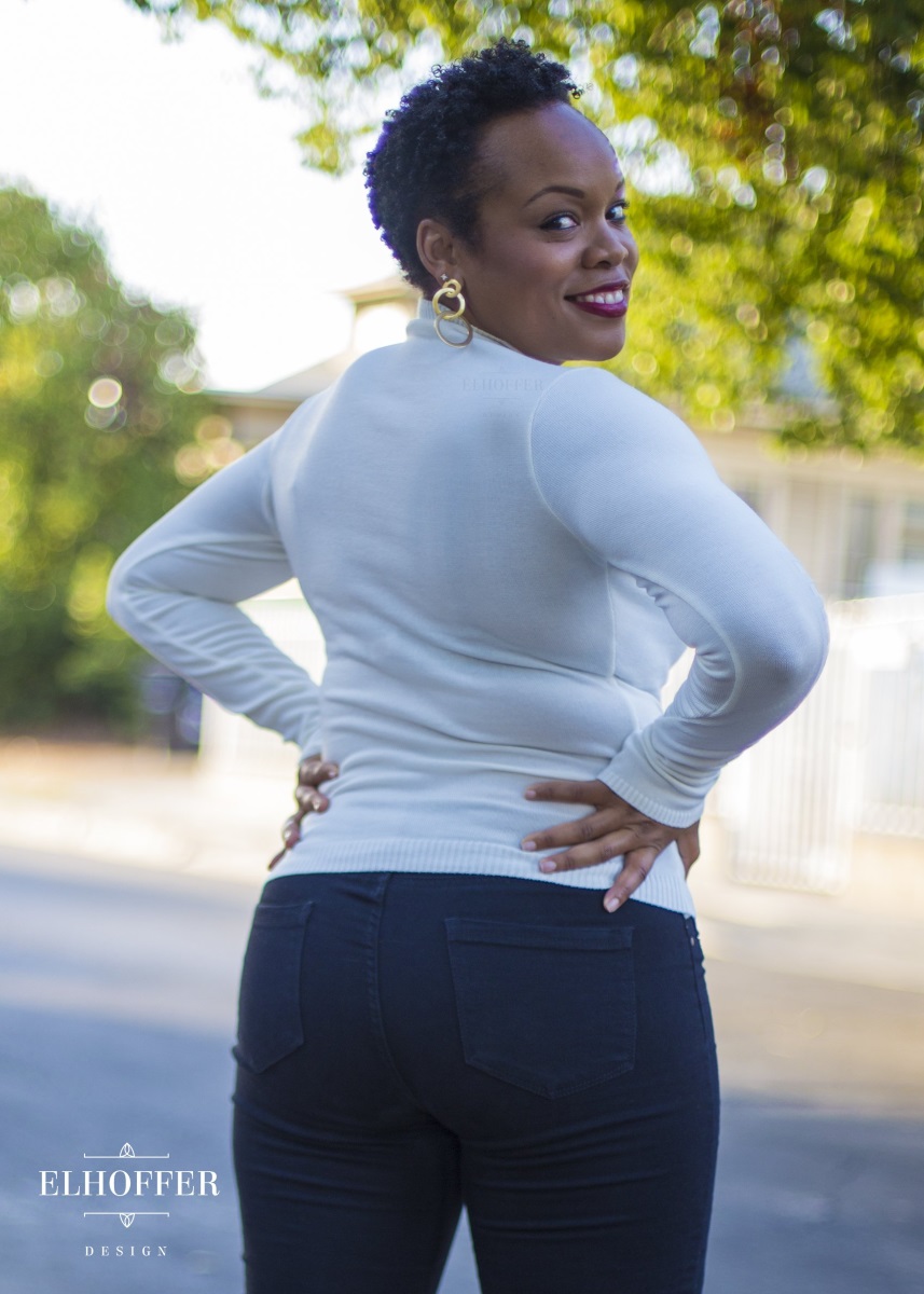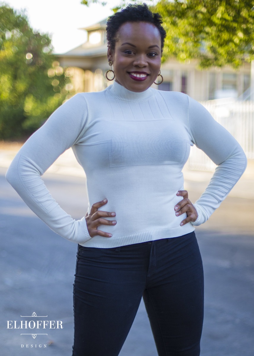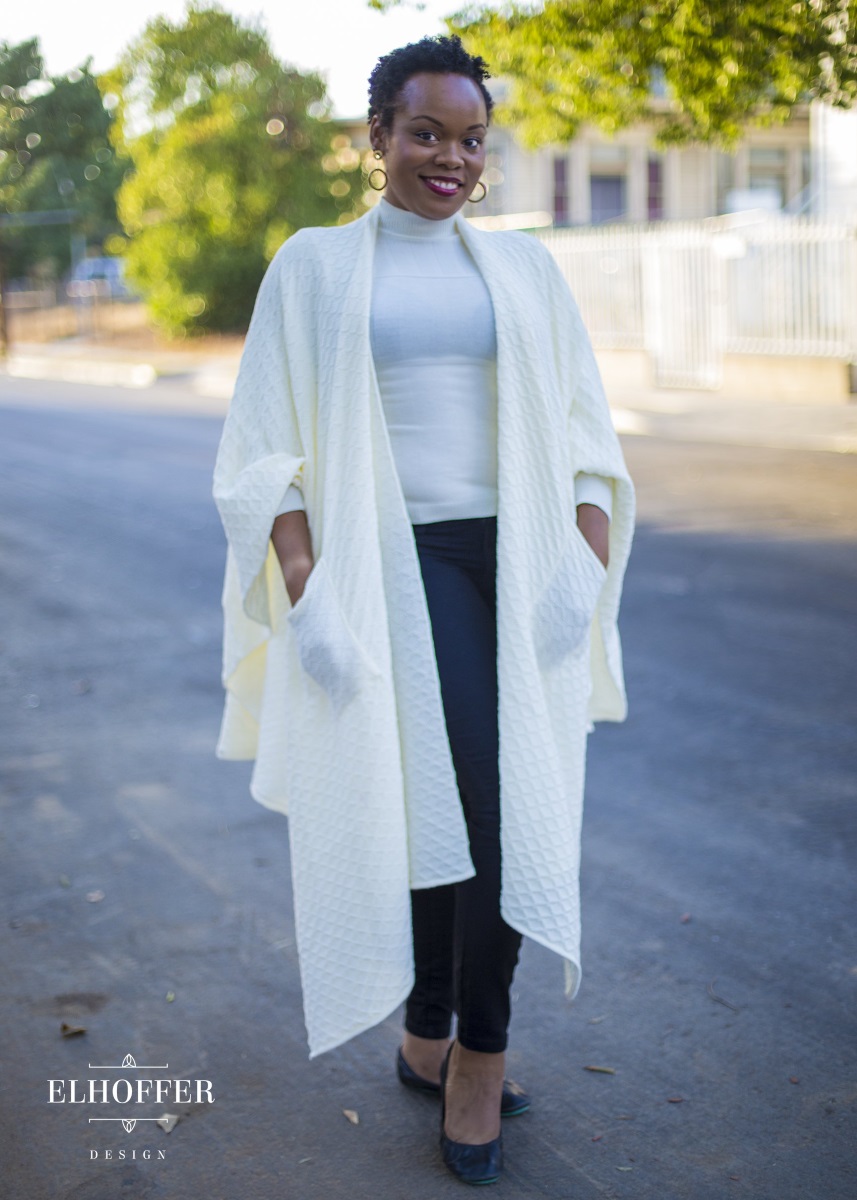 Get ready to celebrate – Elhoffer Design has just released a new mini-collection of Padme’ Amidala inspired apparel! Following on from her amazing Padme’ knitwear collection last year, the new range is inspired by Padme’s white battle outfit that she wears on Tatooine and Geonosis in Attack Of The Clones. The designs include a white pullover sweater, an ivory cape style cardigan, and separate ivory hood (Padme’s costume included a hood, which was seen in behind the scenes footage but not in the final cut).
