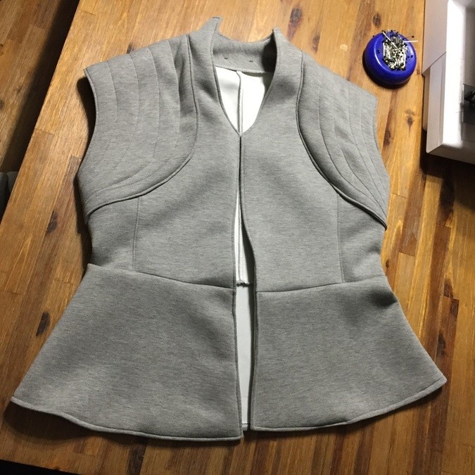 This vest has been hugely popular among my fans, so I’m bringing it here to see if it’s got enough support to be mass manufactured. I had been hand making it till around March, when I cut off orders. It was too much work for one person to make, and I’m that one person. I have been developing dresses and officewear with a factory based out of Los Angeles, and this vest would be not at all difficult for them to make.