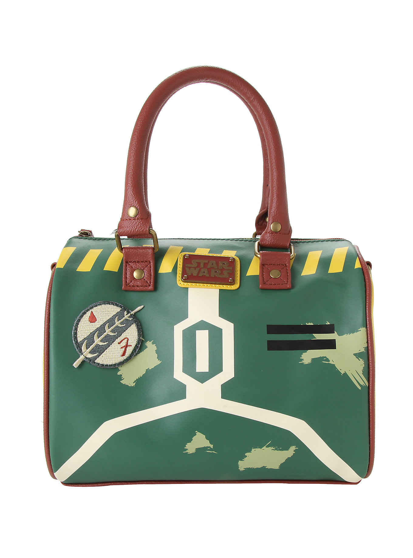 Hot Topic has a new exclusive Boba Fett handbag available! Made by Loungefly, the barrel bag features a Boba Fett inspired design, complete with embroidered patch. The bag is made from faux leather (as is the rest of Loungefly’s Star Wars range), and measures approximately 10″ x 6″ x 8″, with an adjustable shoulder strap. Usually priced at US$49.50, the bag is currently on sale for US$37.12 – Hot Topic can ship internationally.