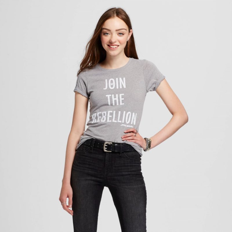 - Join the Rebellion heather grey tee (Olivia Munn) – US$12.99 each – sizes XS to XXL