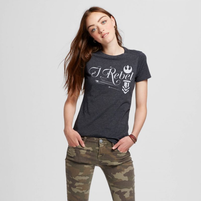 - I Rebel charcoal grey tee (Felicity Jones) – US$12.99 each – sizes XS to XXL