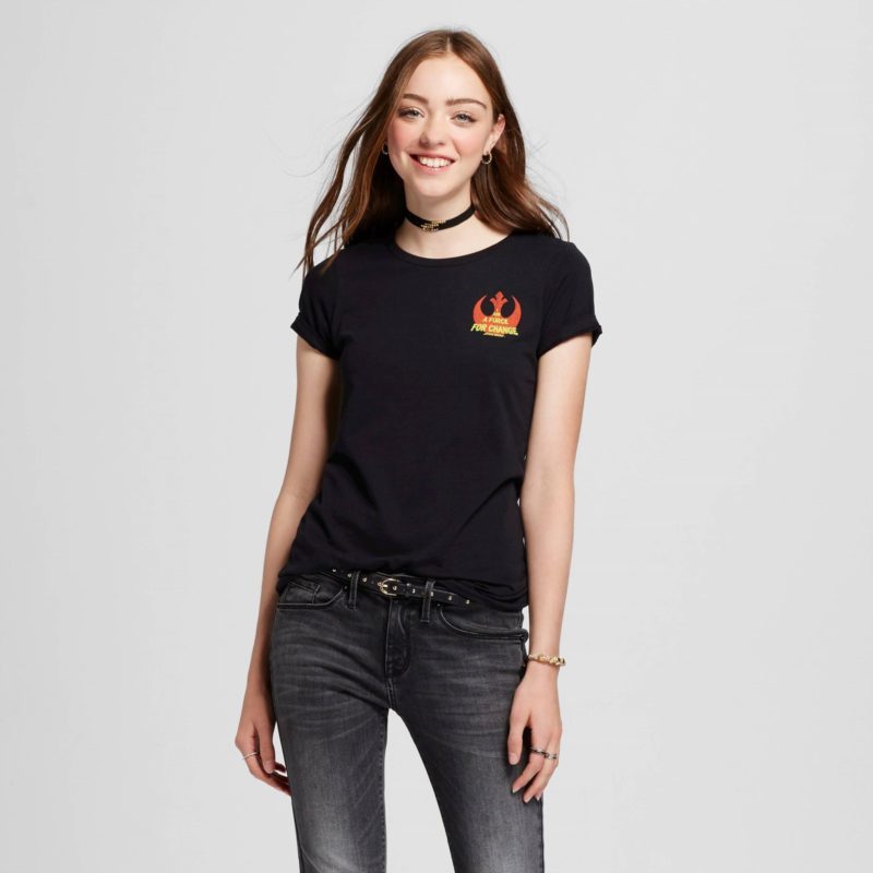 The Force 4 Fashion Rogue One collection is now available to view on the Target website. Made by Fifth Sun, the collection includes 10 t-shirts, and I’m very happy to see that half of them are women’s! The women’s t-shirt designs are also all designed by women – Felicity Jones, June Ambrose, Brittany Snow, Olivia Munn, and Camilla Belle. The collection features a ‘text slogan’ style, with a Rebellion theme.