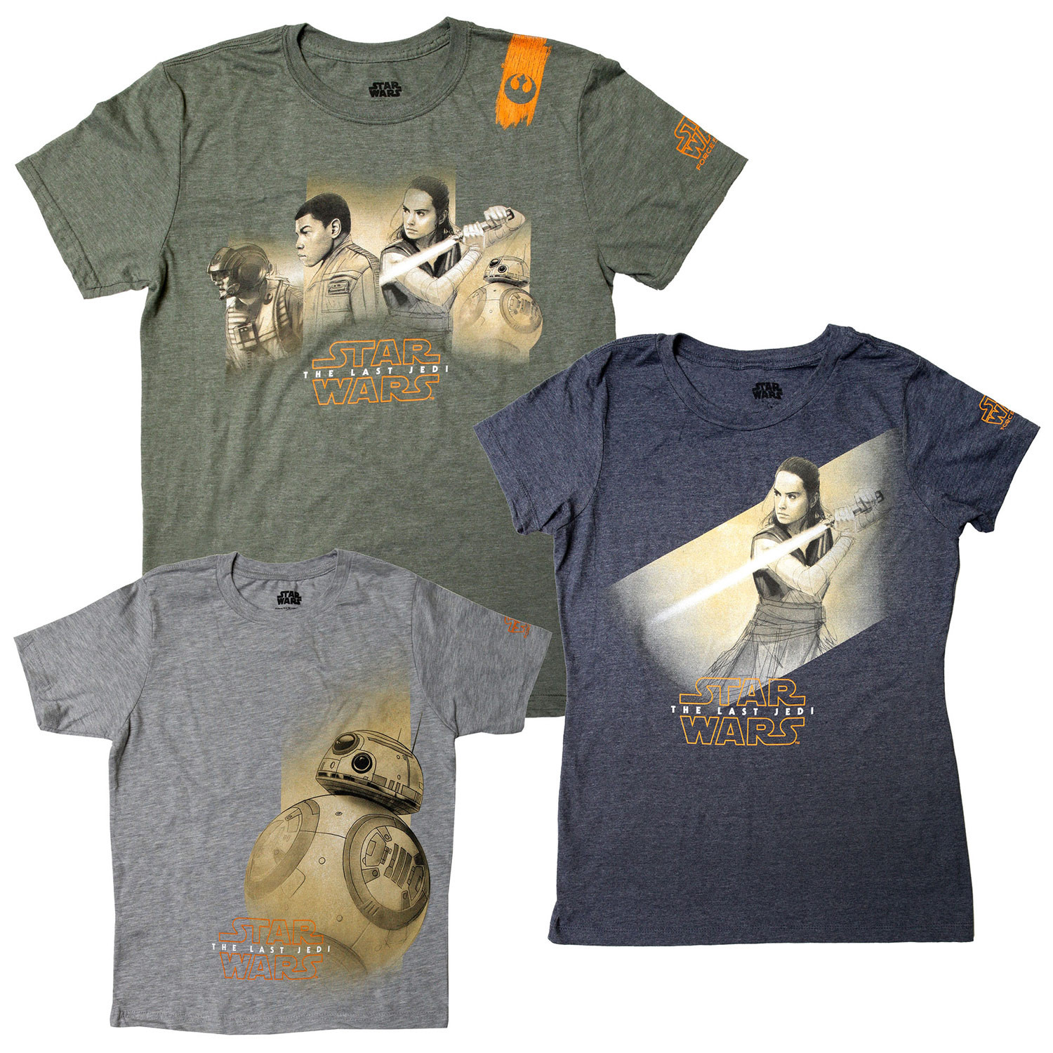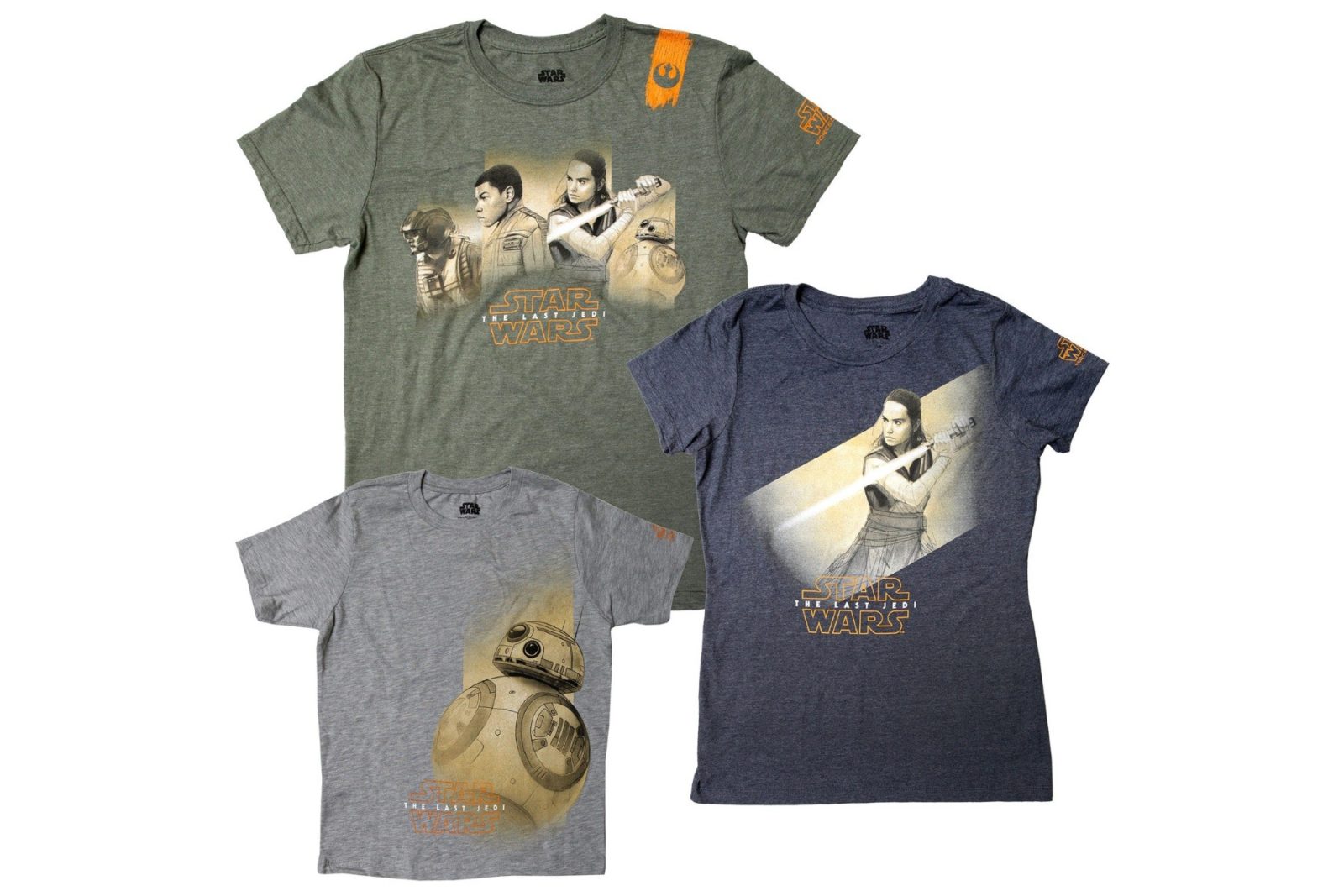 I am so excited to see that the women’s tee features Rey! The amazing artwork depicts Rey as we will see her in The Last Jedi, complete with new hair style, lightsaber, and new costume!