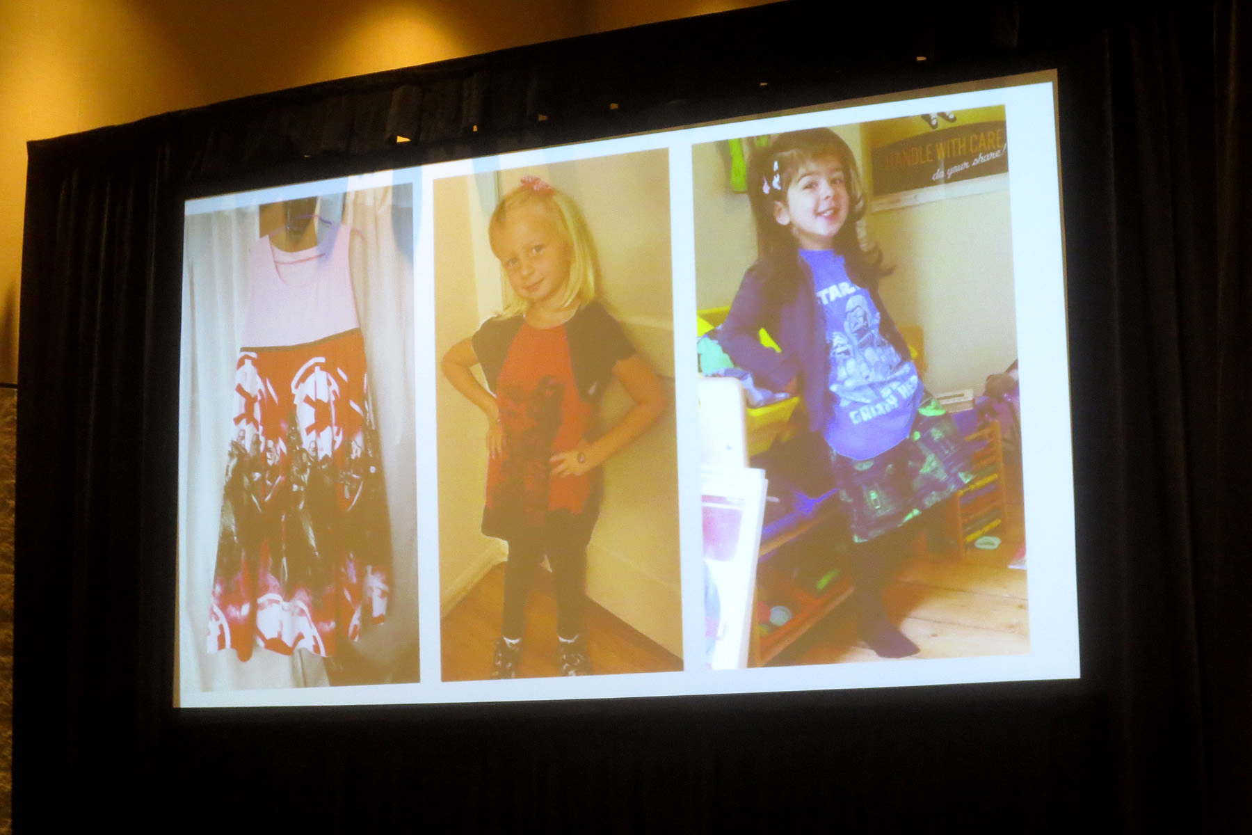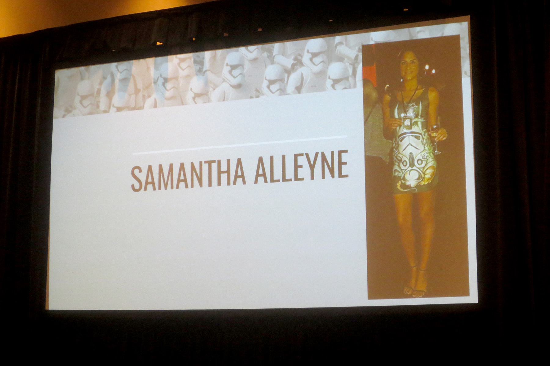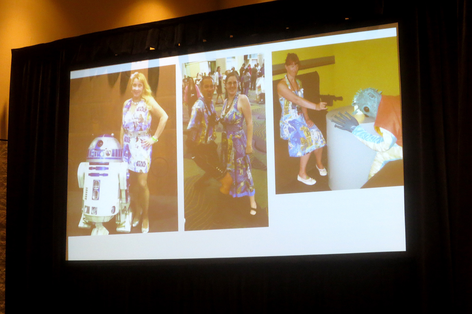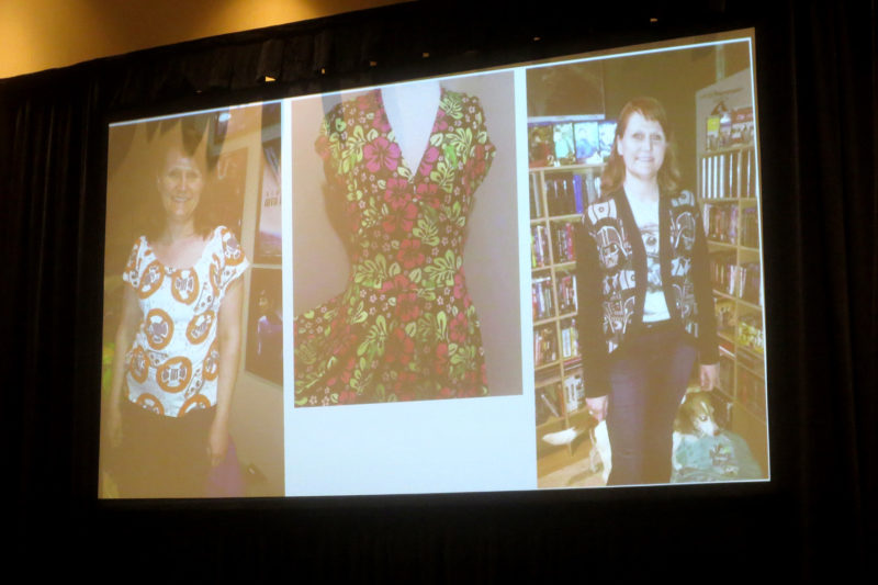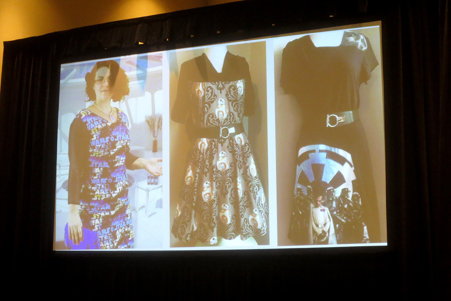 Afterwards the panels posed for photos in their custom-made Star Wars apparel, and answered questions from audience members. They also gave out candy to fans who came up the front to show off their own fan made Star Wars fashion, and also auctioned off a few custom apparel items.