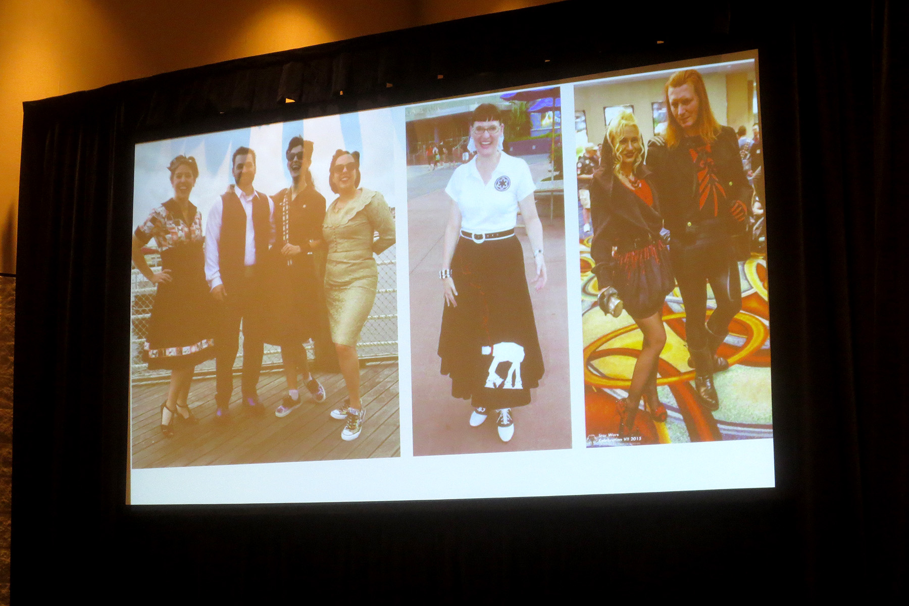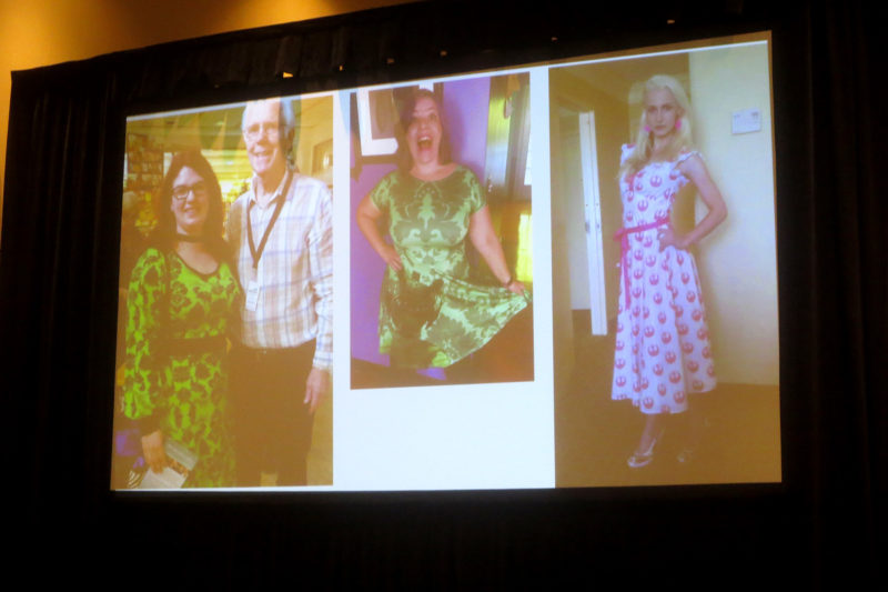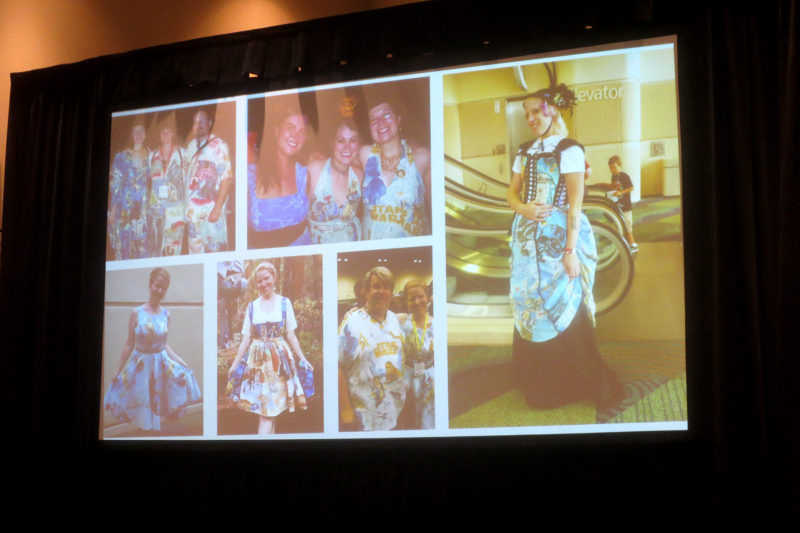 The Force Of Fan Fashion panel was held on the Saturday of Celebration Orlando 2017. The panel was hosted by 4 Star Wars fashion fans, and focused on the area of fan made fashion. The slideshow featured photos of a wide variety of fans showing off their custom Star Wars apparel. As a Star Wars fashion fan, I enjoyed seeing the wide array of fan made Star Wars apparel and accessories presented in the panel.