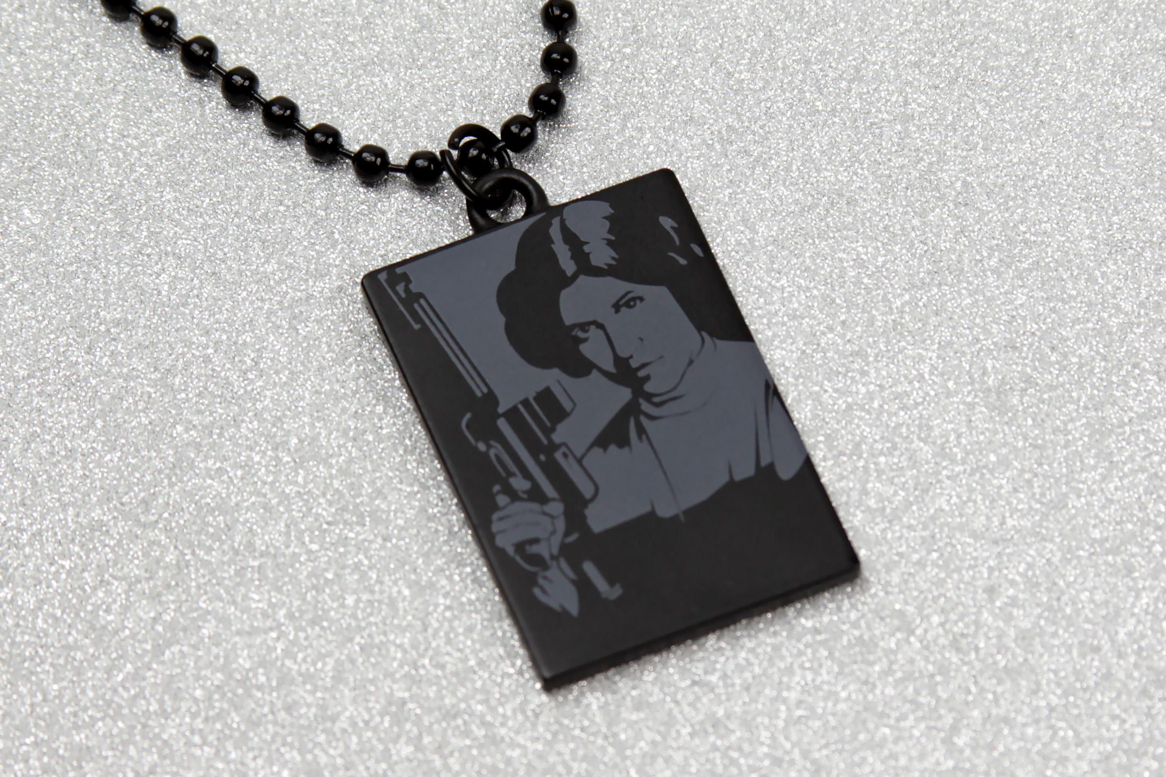 I’m not usually a fan of ‘dog tag’ style necklaces, but I made an exception for this Princess Leia design. I spotted this necklace during a trip to Disneyland a few years ago, and of course I had to get it. It’s not the most sophisticated jewelry design, especially on a cheaper ball-chain style necklace, but it’s very different to most other Leia necklaces available – so for that, I like it.