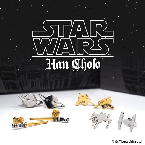 Han Cholo have released another range of items in their Star Wars collection – earrings! In the ‘precious metals’ range of sterling silver jewelry, there are 4 new stud earrings sets available – Yoda, two-tone lightsabers, Han Solo’s blaster, and a matching set of a TIE Fighter and X-Wing fighter earrings. Each set is available in solid .925 sterling silver, or vermeil 14k gold plated, except the lightsaber earrings, which are already two-tone sterling silver and vermeil. These earring sets are priced at US$100 each, all precious metal category items are made to order – Han Cholo can ship internationally.