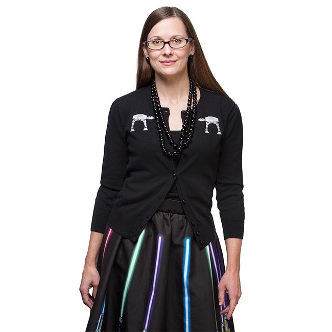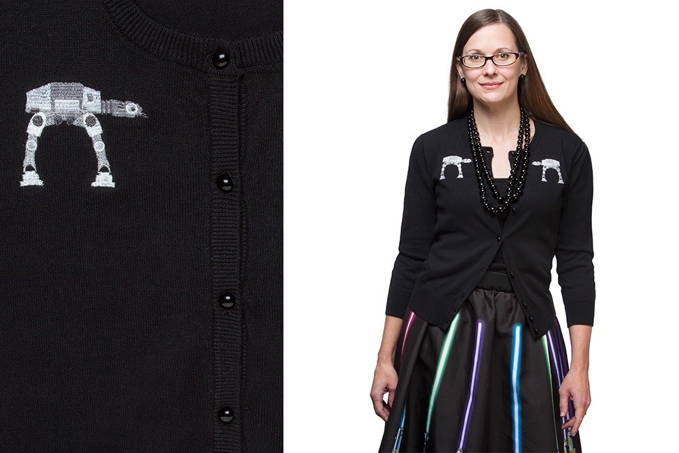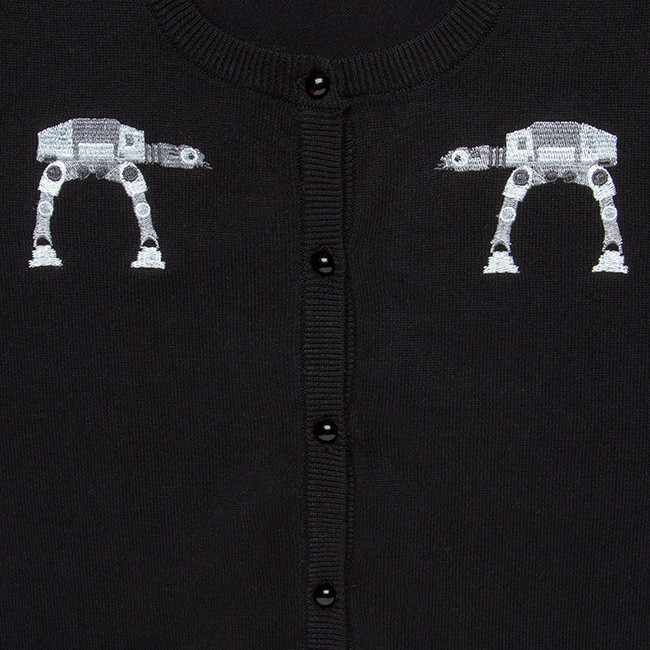 The AT-ATs on this black cardigan are so adorable, it’s hard to remember they’re the “the standard of Imperial firepower on the battlefield.”