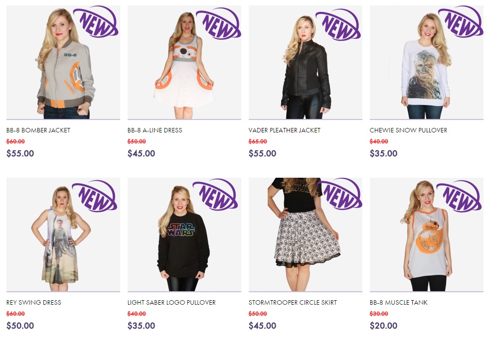 The Black Friday sale at Her Universe has started! The entire range of Star Wars apparel is on sale, even the new items! There’s some some great discounts – US$25 off the pin up dresses, US$20 off the manga hoodie, and more! It’s a great time to pick up items from the new range – there’s so much to choose from 🙂