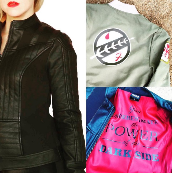 Her Universe has posted another preview photo from the upcoming Her Universe collection, and Hot Topic has posted a larger photo of the Boba Fett jacket! The Boba Fett jacket was just visible in the sign seen in the earlier Hot Topic Comikaze video, so it’s great to see the back design. I really love the Darth Vader jacket – the quote printed on the lining is a fantastic detail! These photos follow the earlier preview photos of the Princess Leia dress, BB-8 jacket, Darth Vader jacket, and Darth Vader cape dress previews. The collection launches at Hot Topic and Torrid on November 16th – I can’t wait!