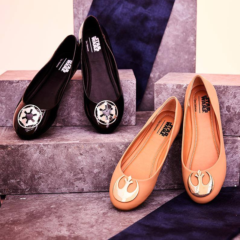 Celebrate! The fabulous Her Universe x Star Wars flats are now available online! Choose from the Rebel Alliance or Galactic Empire symbols – or get both!
