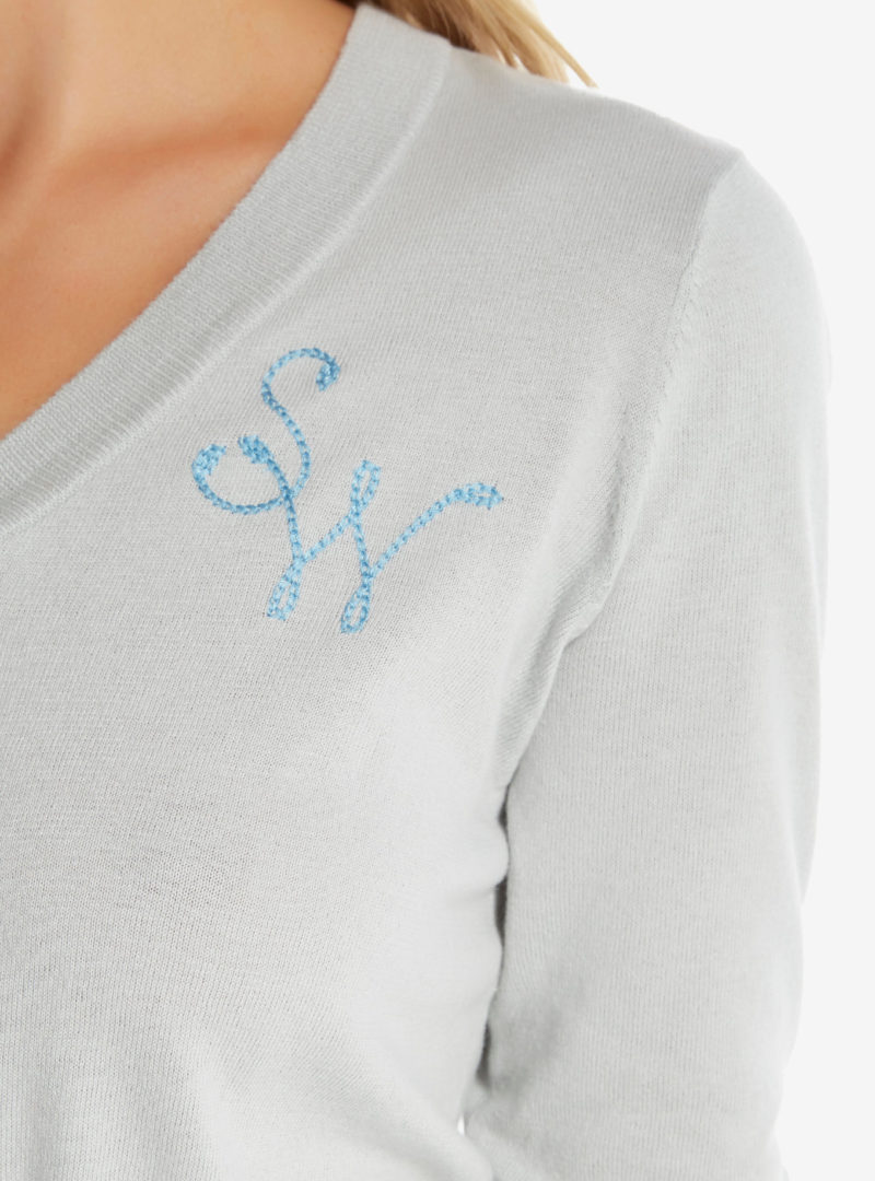 Give a subtle shout-out to your favorite intergalactic franchise with this cropped grey cardigan. This 1950’s style cover up has ‘SW’ embroidered on the chest in sky blue.